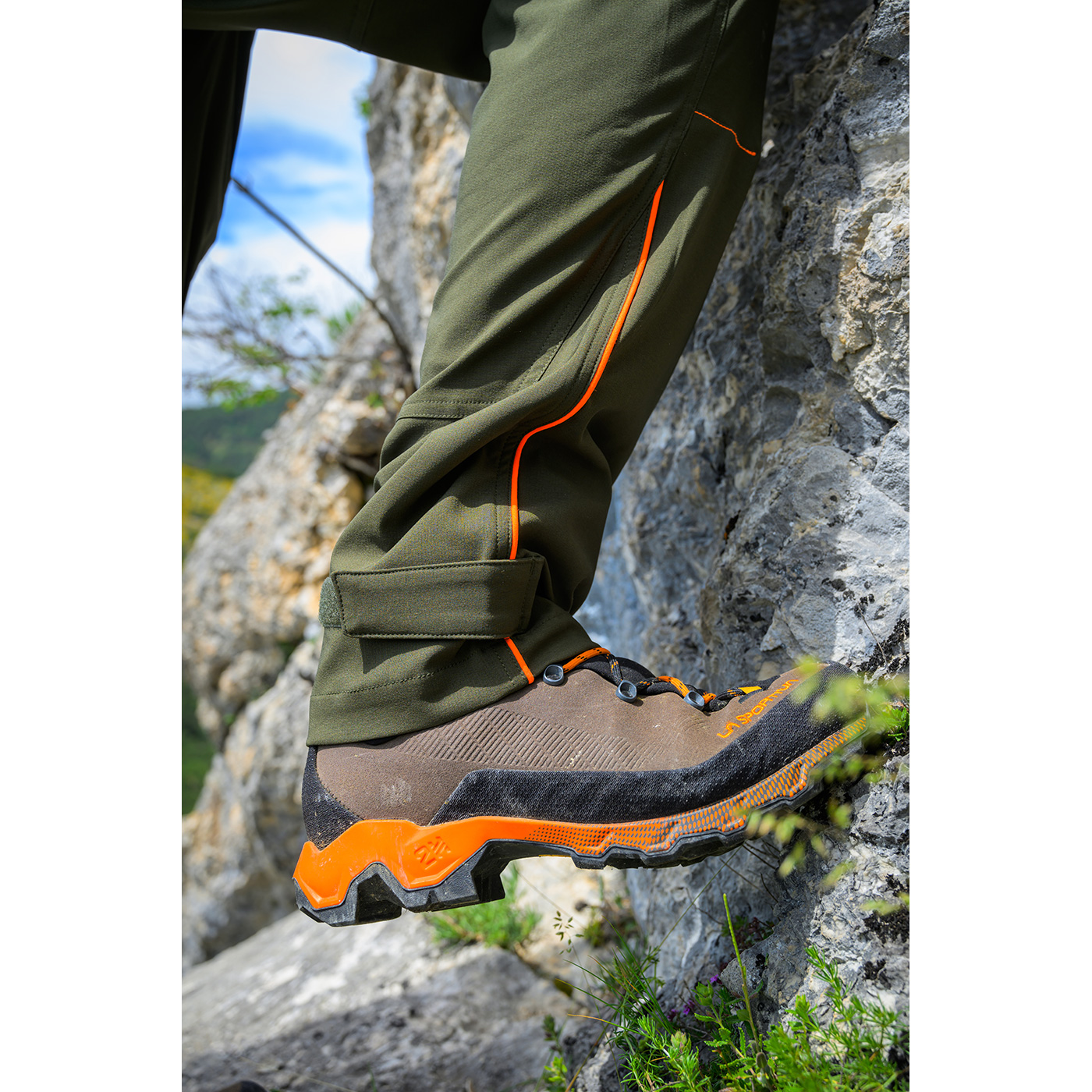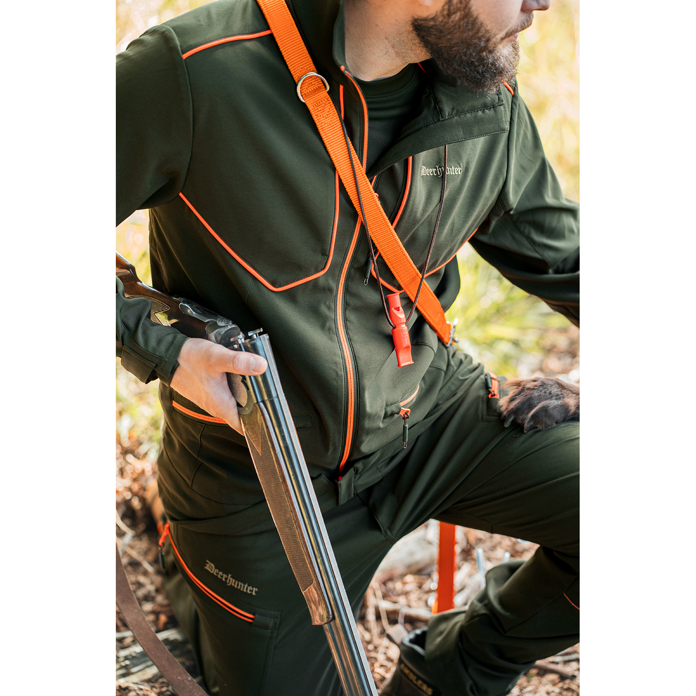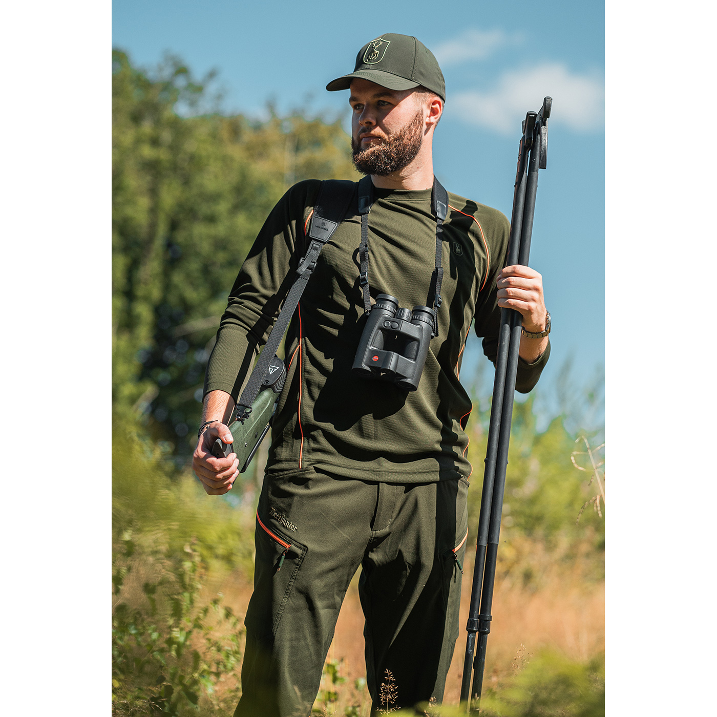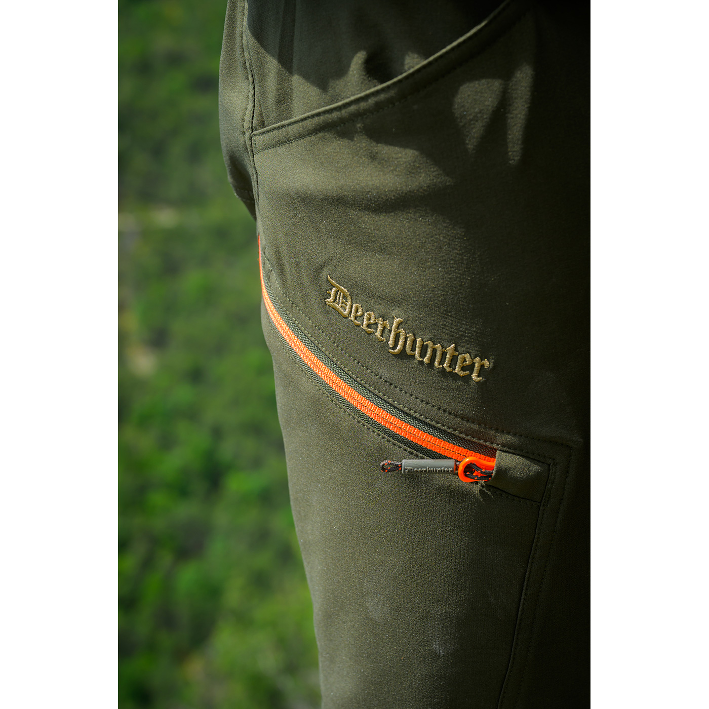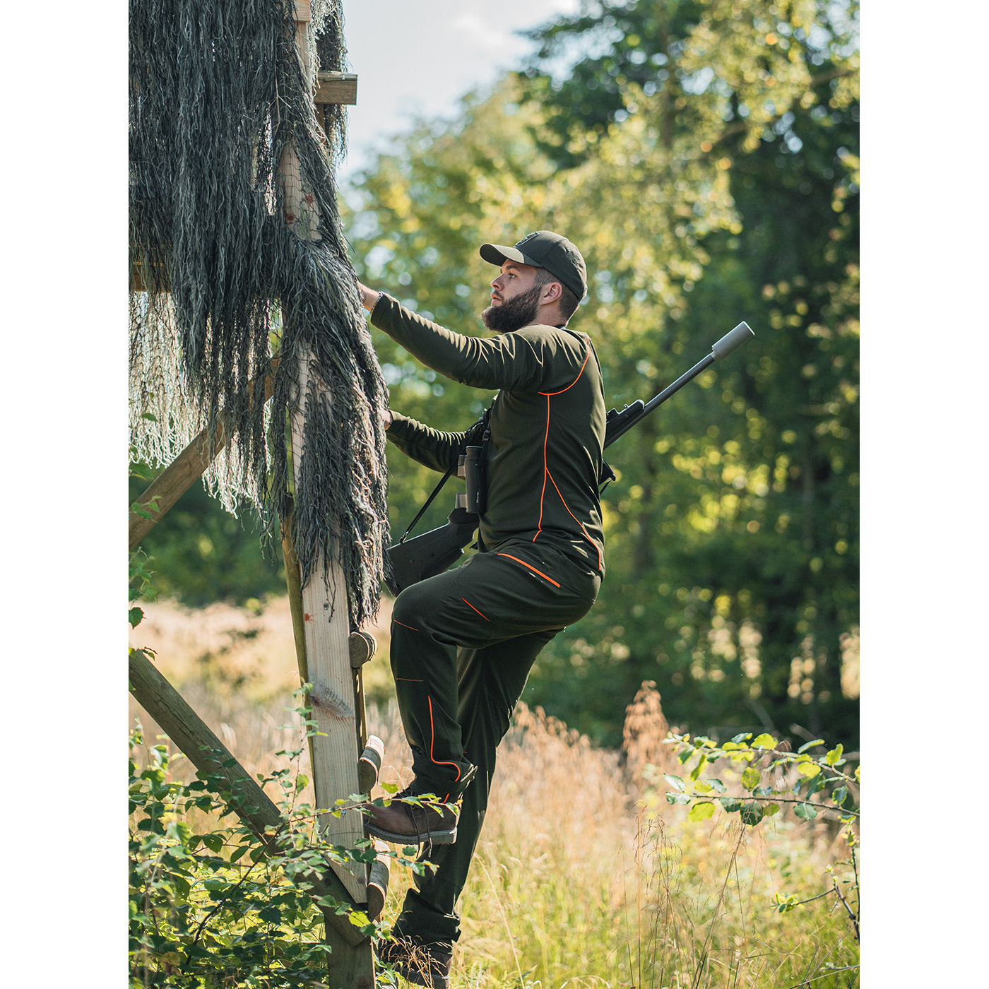 De Chamois broek is ontwikkeld voor jagers die behoefte hebben aan comfort, bewegingsvrijheid en betrouwbare bescherming in een slank ontwerp. Gemaakt van rekbaar, ademend materiaal met een waterafstotende coating, zijn ze ideaal voor actieve dagen in het veld. Een elastische tailleband zorgt voor een goede pasvorm en flexibiliteit, ondersteund door voorgevormde knieën en verstelbare beenmanchetten. Doordachte opbergmogelijkheden zijn er in de vorm van zakken aan de voorkant, dijbeenzakken met ritssluiting en een achterzak met verborgen ritssluiting. De broek kan perfect worden gecombineerd met het zeemjack en de fleece voor een veelzijdige, kant-en-klare jachtset.