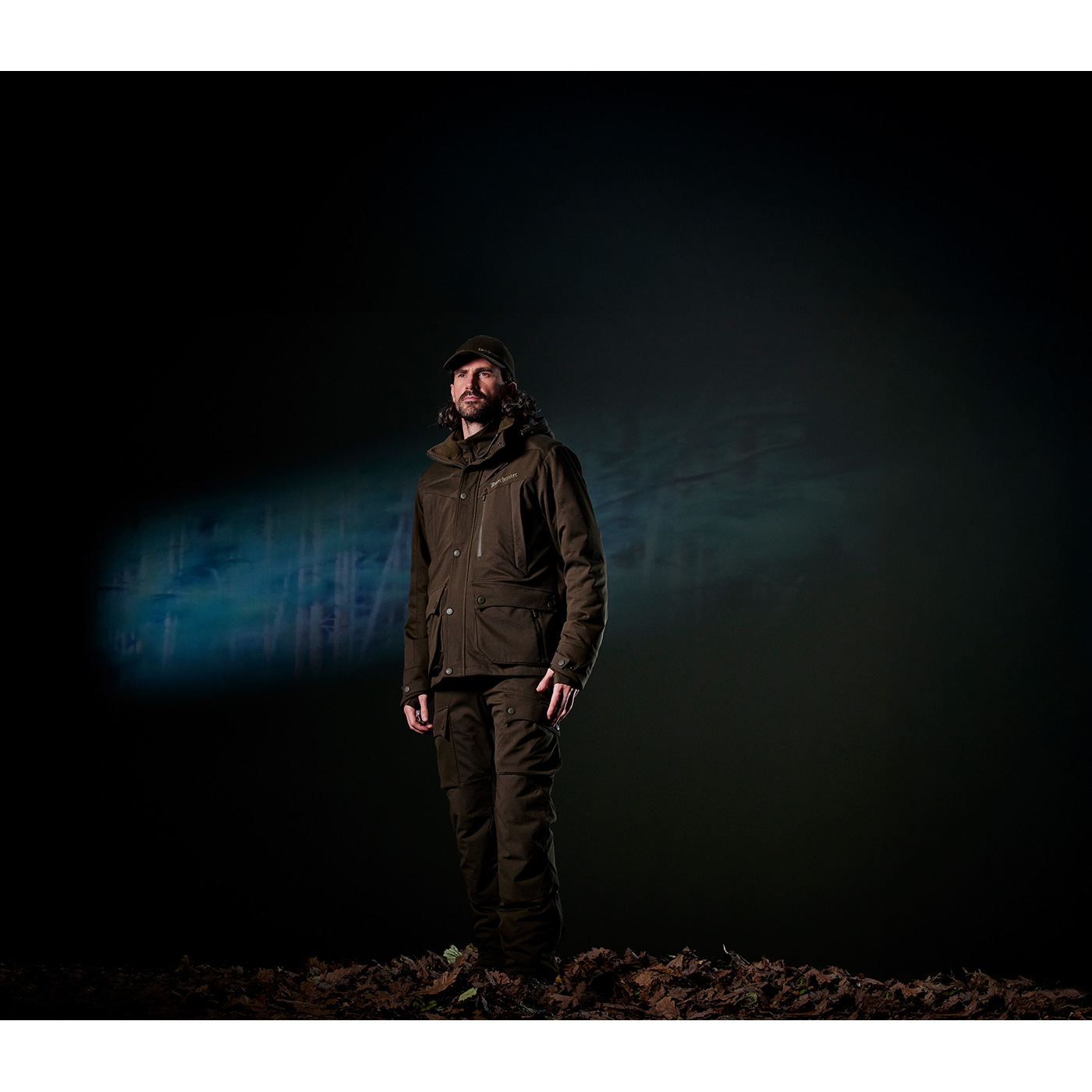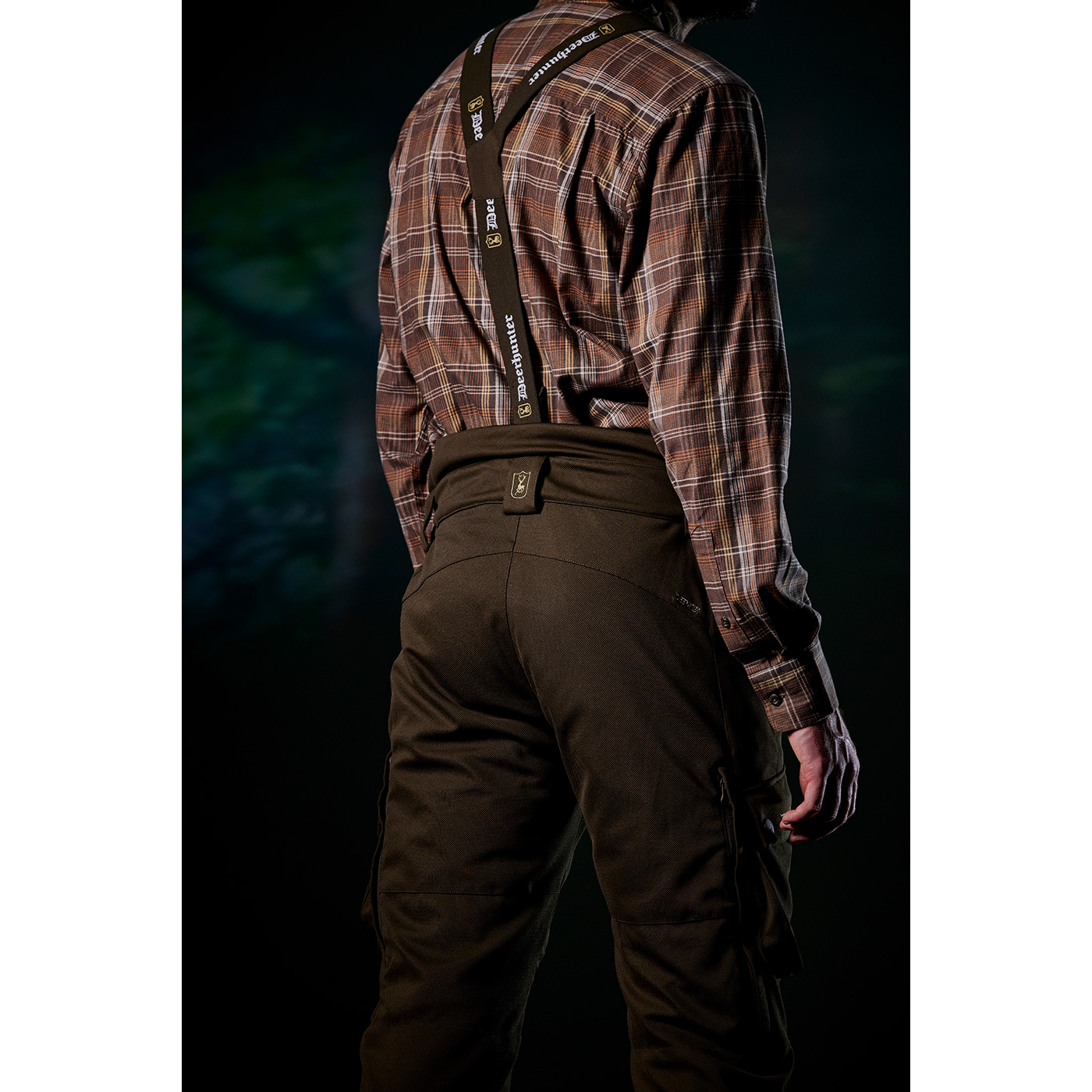 De Muflon Pro broek is ontworpen voor veeleisende jachtpartijen in zware omstandigheden en biedt bescherming, flexibiliteit en geavanceerde functionaliteit. Gemaakt van gerecycled polyester en versterkt met Deer-X Dura inzetstukken, en voorzien van lichtgewicht 3M™ Thinsulate™ isolatie. Het DEER-TEX® membraan biedt 10.000 mm waterdichtheid en ademend vermogen, terwijl ventilatieritsen en een mesh voering de temperatuur helpen reguleren. Verstevigde knie- en beenmanchetten, afneembare bretels, veilige zakken en haken voor laarzen maken de broek bijzonder gemakkelijk om in te bewegen. Combineer hem met het Muflon Pro jack voor een weerbestendige jachtset.