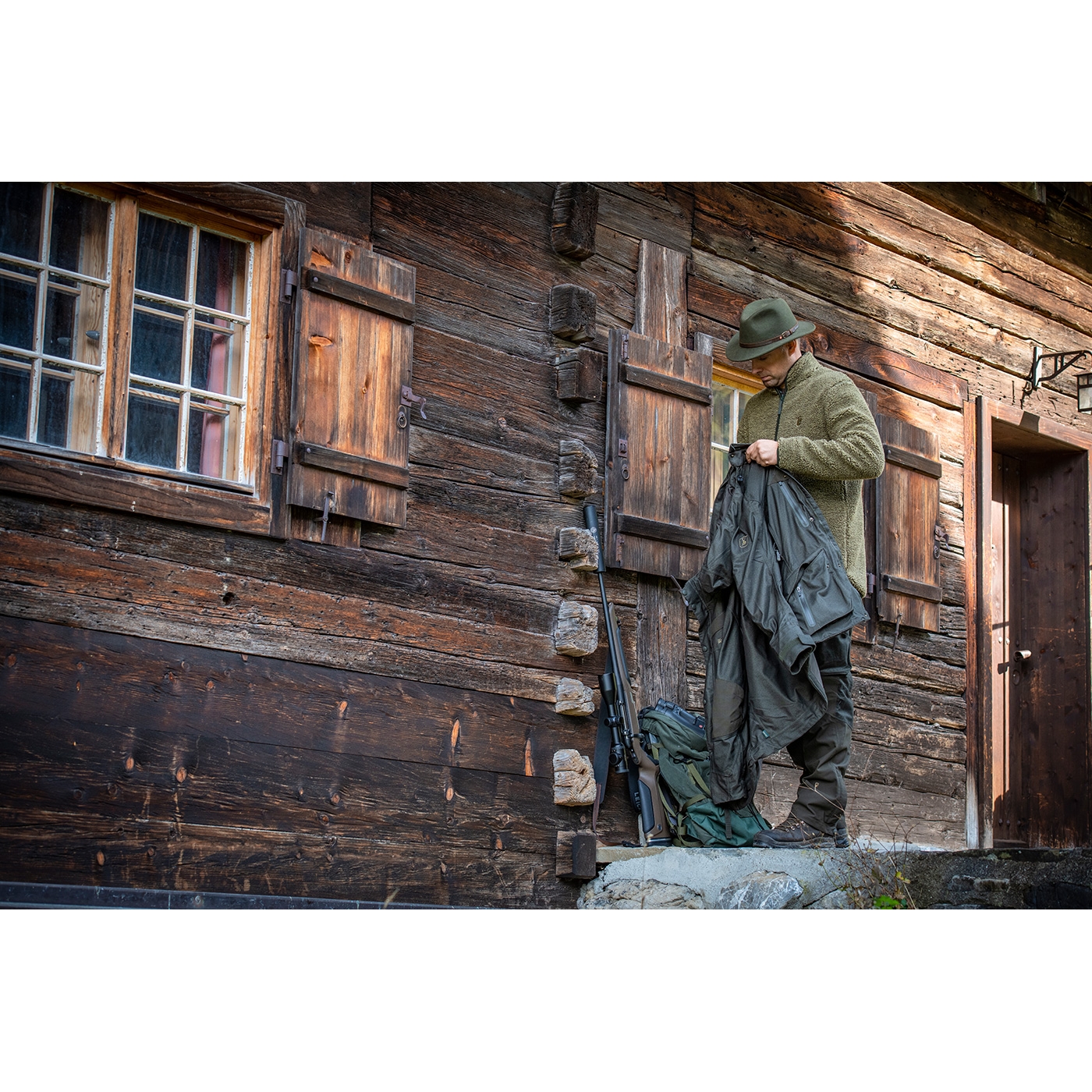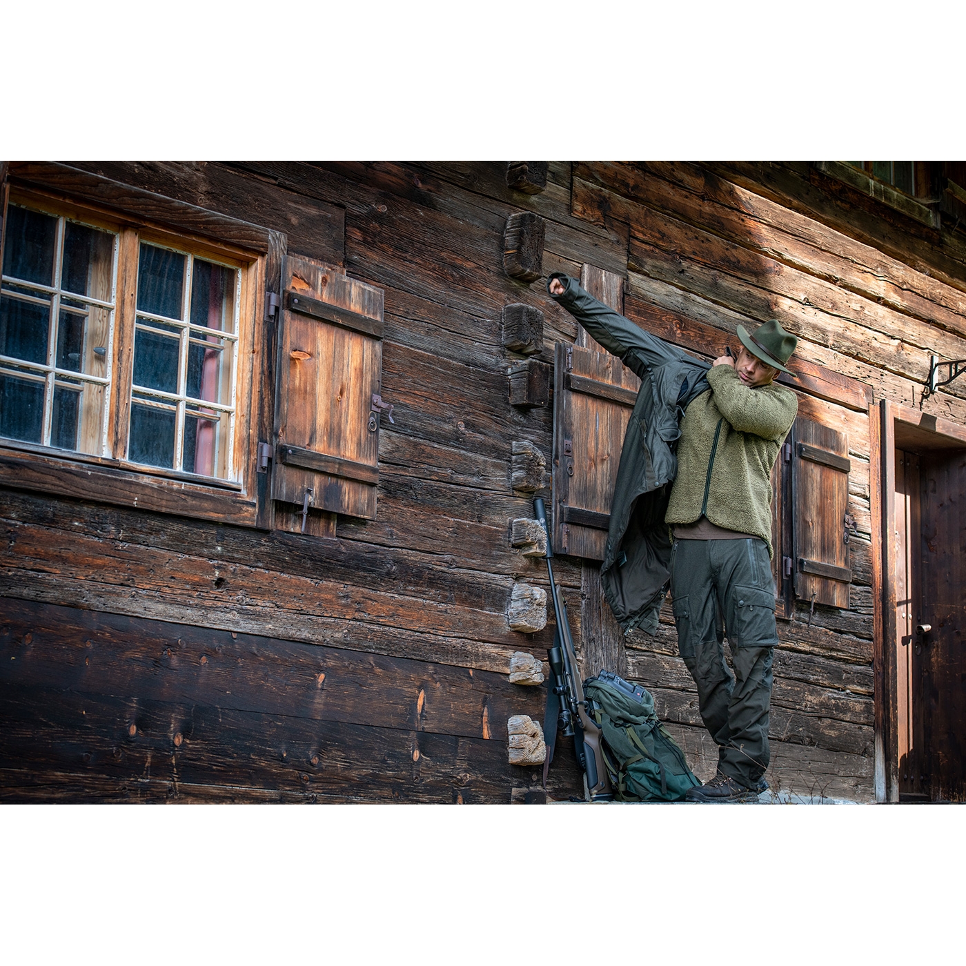 De RAM broek met versteviging van DEERHUNTER is ideaal voor alle veeleisende jachttoepassingen en is bestand tegen extreme weersomstandigheden. De elastische, verstelbare tailleband met bretels en verstelbare beenuiteinden met rits en drukknopen zorgen voor een pasvorm op maat. Functionele zakken bieden veel opbergruimte: 2 zijzakken met ritssluiting en 2 opgestikte beenzakken met kleppen en drukknopen. Als het warmer wordt of de activiteit toeneemt, zorgen de verborgen ventilatieritsen op de dijen voor aangename verkoeling. Voorgevormde kniezones en robuuste verstevigingen op de rug en onderbenen beschermen tegen doornen en ondergroei en bieden een hoge mate van duurzaamheid. Het DEER-Tex® Performance Shell membraan, de waterafstotende oppervlaktebehandeling en de getapete naden zorgen voor een betrouwbare bescherming tegen vocht. De broek is ademend, winddicht en waterdicht. Het zacht geborstelde, geluidsarme 2-way stretchmateriaal zorgt voor veel comfort en meer bewegingsvrijheid.