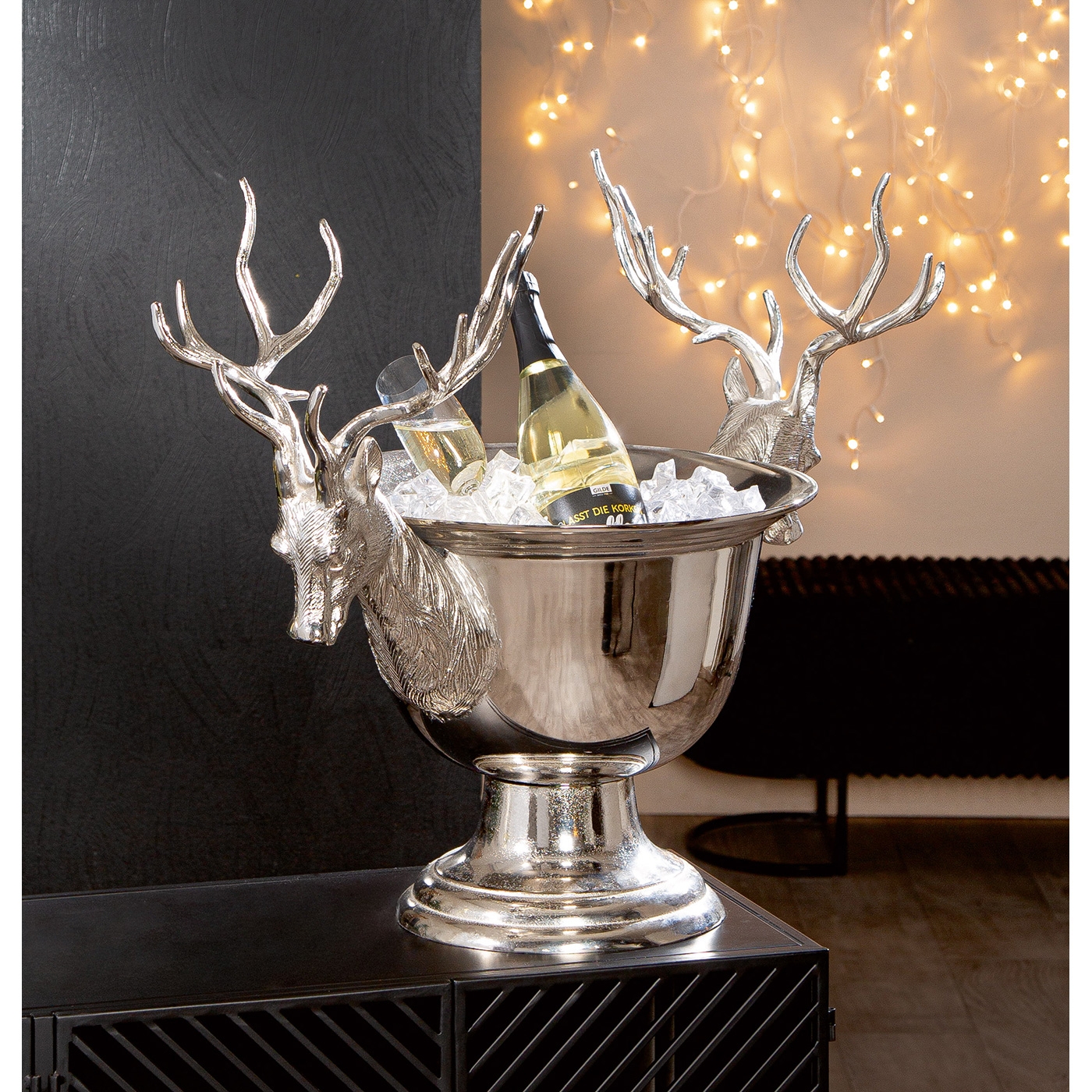 Zeer decoratieve, elegante, zilverkleurige aluminium schaal die als champagnekoeler of wijnkoeler de finishing touch geeft aan je feestelijkheden. Met vilten glijders onder de basis om krassen te voorkomen