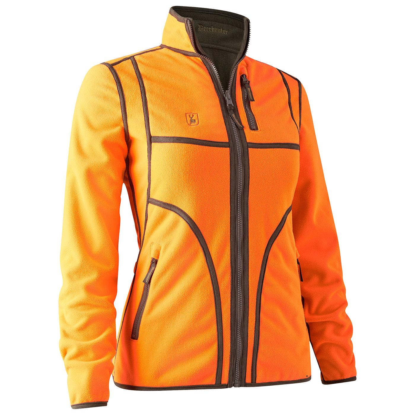 Het Lady Pam Bonded reversible fleecejack is uitgerust met het Deerhunter Stormliner membraan en is daardoor waterdicht (5000 mm), winddicht (3000 g) en ademend - belangrijke eigenschappen voor elke actieve outdoordame en een veelzijdige oplossing voor alle buitensituaties. Of je nu de hond uitlaat, de kinderen naar school brengt of een dag op het terrein doorbrengt: Het Lady Pam Bonded omkeerbare fleecejack biedt twee geweldige stijlen in één jack. De klassieke effen kleur en de bies van imitatiesuède aan de ene kant zorgen voor een traditionele landelijke look die je kunt combineren met een klassieke jeans en laarzen voor een elegante, casual outfit. Binnenstebuiten gekeerd biedt de fel oranje kleur van het jack zichtbaarheid in het veld, is CE gemarkeerd en PPE CAT II gecertificeerd voor extra veiligheid. Drie voorzakken en drie binnenzakken met verborgen ritsen maken het Lady Pam Bonded jack, dat gemaakt is van een zachte, geluidsarme fleece, compleet.