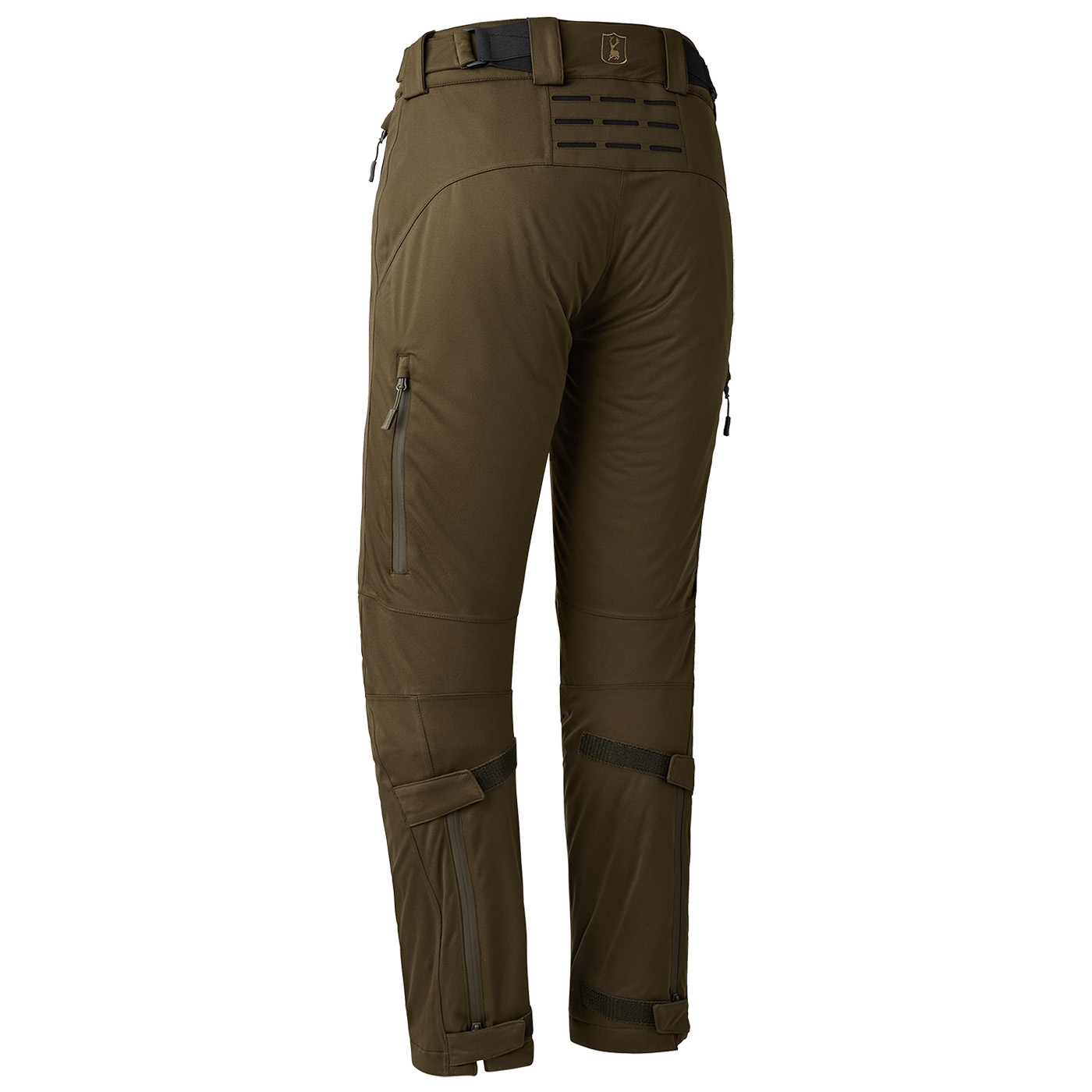 De geïsoleerde en waterdichte Excape dames winterbroek met DEER-TEX® Performance Shell membraan is een betrouwbare keuze, ongeacht het weer. Deze ademende, lichtgewicht en winddichte broek is een must-have voor elk type jacht. De broek met verstelbare elastische tailleband, afneembare bretels en lussen voor verstelbare wijdte bij de onderbenen zorgen voor een aangepaste, comfortabele en veilige pasvorm. Het 2-weg stretchmateriaal, de voorgevormde knieën en de extra, verwarmende voering op het zitvlak en de achterkant van de dijen zorgen voor een hoog draagcomfort. 2 zijzakken aan de voorkant, 1 ergonomische beenzak en 1 achterzak met waterdichte ritsen zorgen voor voldoende opbergruimte. Deze broek heeft ook een waterafstotende voering en een gemakkelijk bereikbare, waterdichte ventilatierit onderin de rug.