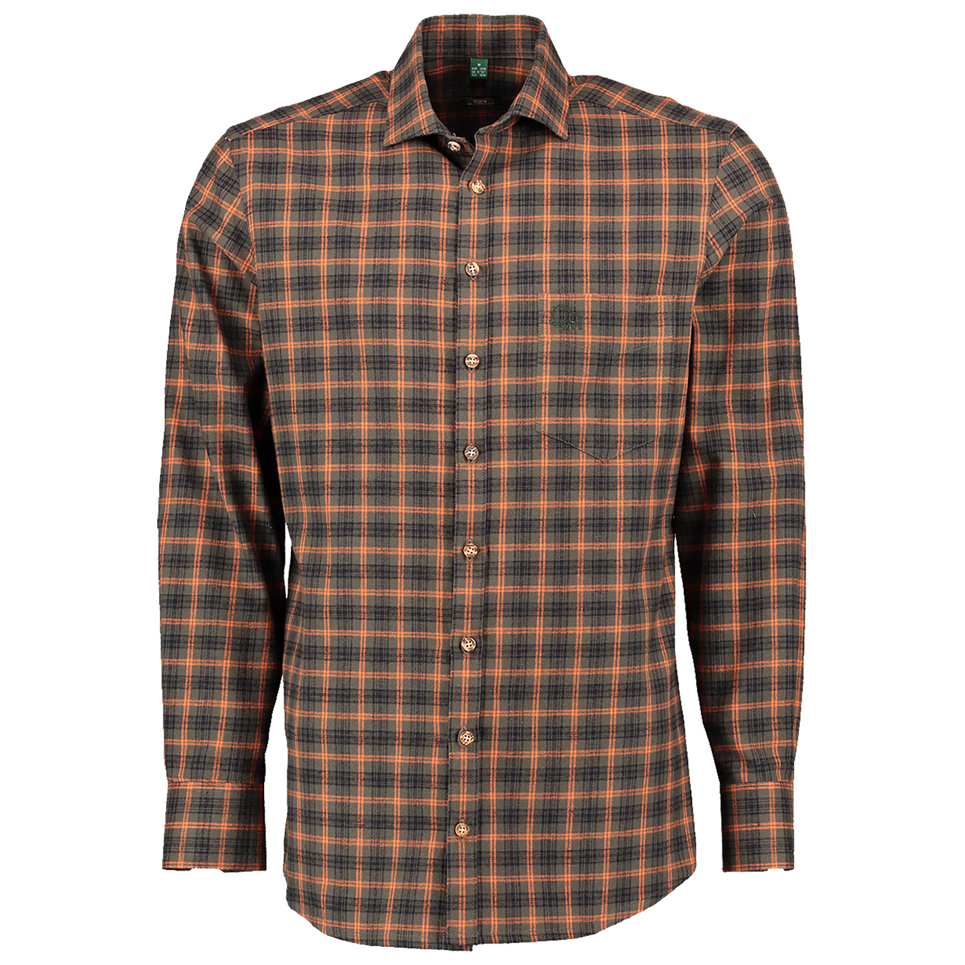 Flanellen geruit overhemd van OS-Trachten met een klassieke haaienkraag, in een licht getailleerde snit voor een moderne, nauwsluitende look, gemaakt van huidvriendelijk katoenmateriaal dat perfect aanvoelt en aangenaam aanvoelt, geschikt voor koelere dagen en in de herfst en winter als basislaag voor jachtgelegenheden. De knopen in natuurlijke look geven dit geruite overhemd een stijlvolle look. De opgestikte borstzak met discreet borduursel voor kleine spullen is praktisch voor dagelijks gebruik. Dankzij de afgeronde zoom kan het ook comfortabel over een broek worden gedragen. Of het nu op het jachtveld, op de schietbaan of aan de jachtronde tafel is, dit herenoverhemd van OS-Trachten sluit nauw aan op het lichaam in een slanke pasvorm en ziet er stijlvol uit.