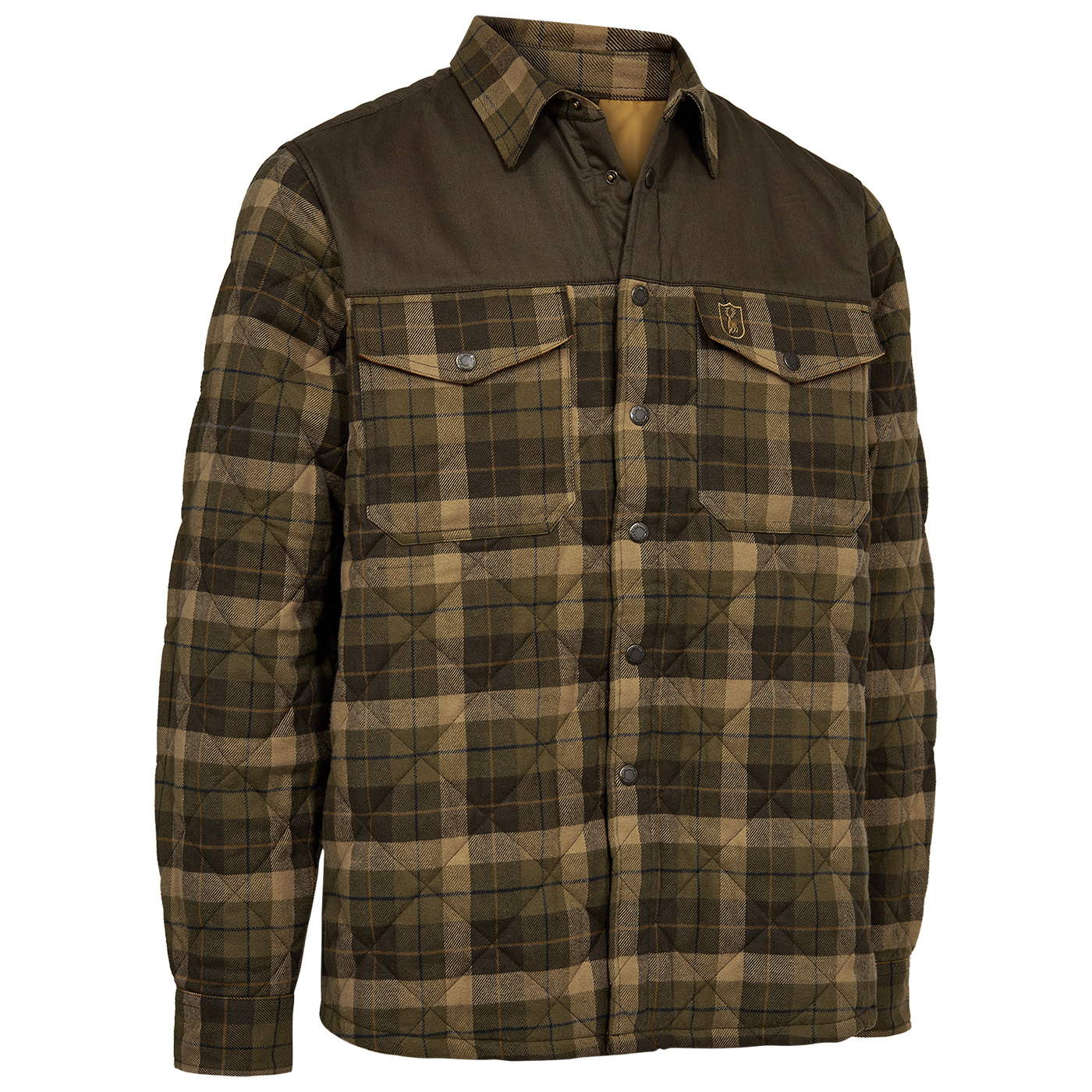 Het gewatteerde geruite flanellen overhemd met vulling van Deerhunter is de ideale keuze voor koele herfst- en winterdagen. Klassiek, opvallend geruit overhemdjasje met contrastkleurige biesjes op het schouderstuk en de ellebogen. Dit overhemdjack is niet alleen comfortabel, maar maakt ook indruk met zijn functionaliteit: de sluiting en manchetten aan de voorkant zijn voorzien van drukknopen met Deerhunter-logo, terwijl de 2 praktische, afsluitbare borstzakken veel opbergruimte bieden voor belangrijke spullen. De wattering zorgt voor extra warmte en maakt het de perfecte aanvulling voor buitenactiviteiten en jachttrips.