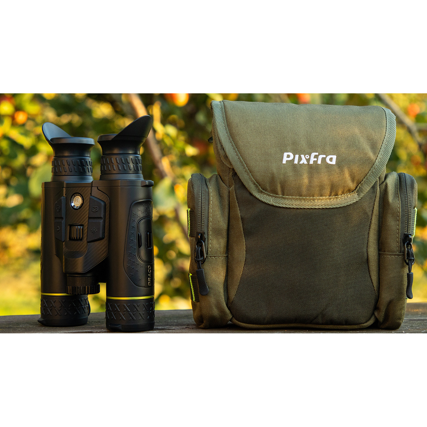 Het exclusieve Pixfra borstzakje houdt de Draco stevig tegen je lichaam. Zelfs als je hem loslaat, blijft hij beschermd en bij de hand - perfect om snel te wisselen tussen observatie en beweging.