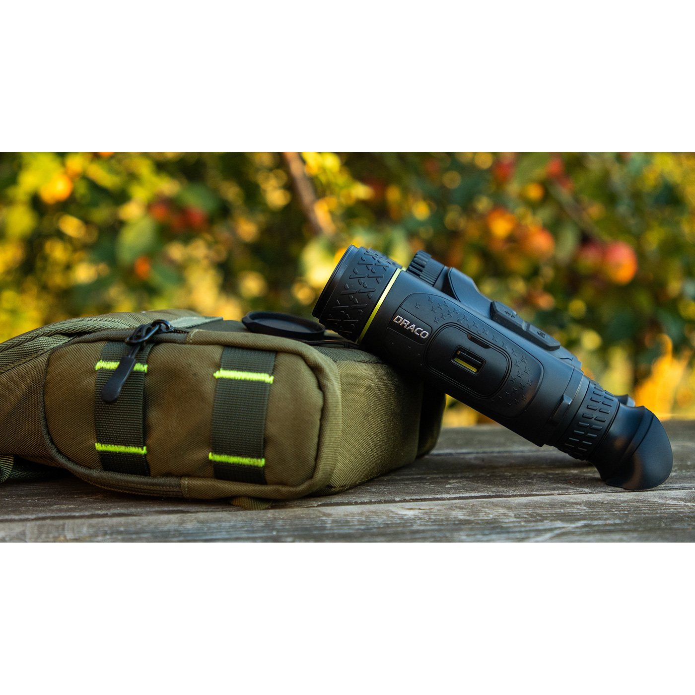 De Draco D335-4K is de slimme keuze voor gebruikers die op zoek zijn naar maximale mobiliteit en sterke prestaties op korte tot middellange afstanden. De 384×288 thermische sensor met <15 mK NETD en 35 mm optiek levert een thermisch gezichtsveld van 13,7×10,3 m @100 m en een vergroting van 3,8-30,4×; het detectiebereik is 1800 m. Dit wordt aangevuld met 4K digitaal nachtzicht (1/1,8" CMOS, 55 mm, 5,5-44×; FOV @100 m: 14×8,8 m), een laserafstandsmeter tot 1000 m en een verwisselbare IR-verlichting met 940 nm. Met een gewicht van ≤620 g, 195×130,6×61,7 mm en dual-band WLAN is de Draco een veelzijdige metgezel voor stalken, territoriumcontrole en nachtelijke observatie rondom het huis.