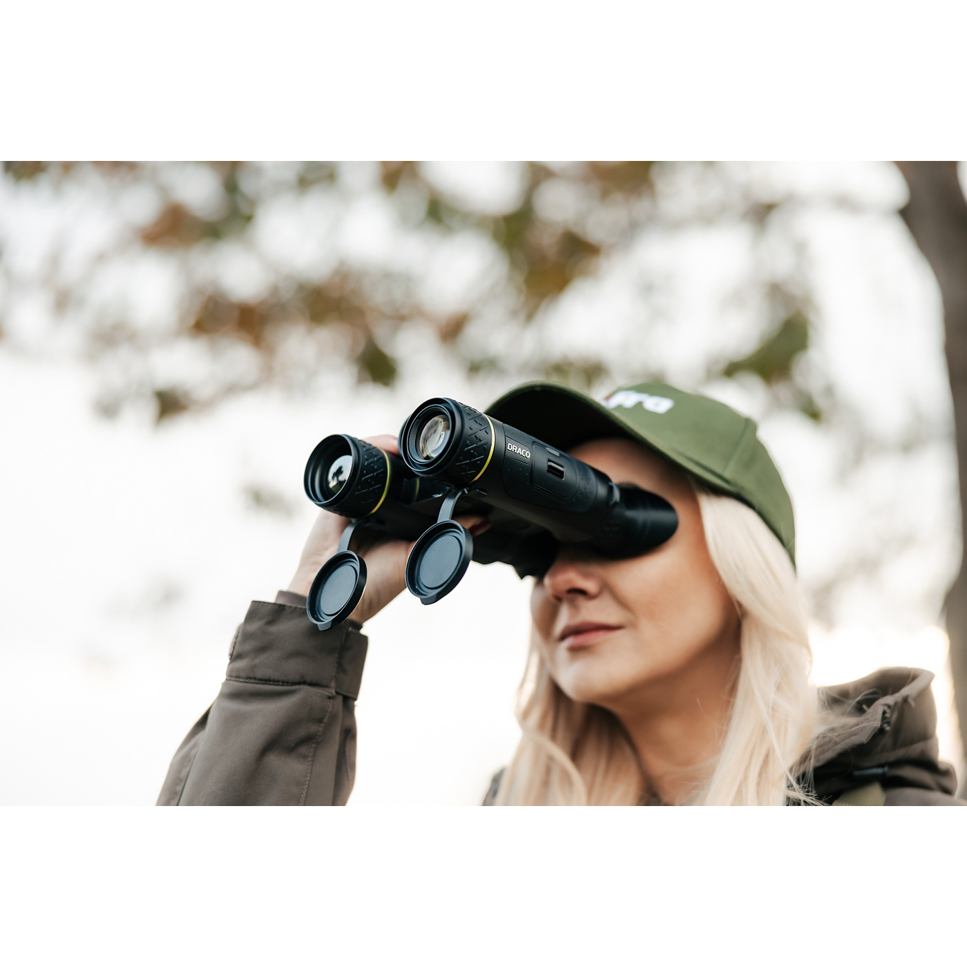 Met een gewicht van slechts 600 gram is de Draco een echte lichtgewicht onder de multifunctionele verrekijkers. De ergonomische vorm ligt perfect in de hand en maakt een moeiteloze bediening mogelijk, zelfs bij langdurig gebruik. Hierdoor kun je altijd het overzicht bewaren - of je nu aan het stalken bent, in het jachtgebied of 's nachts wild observeert.