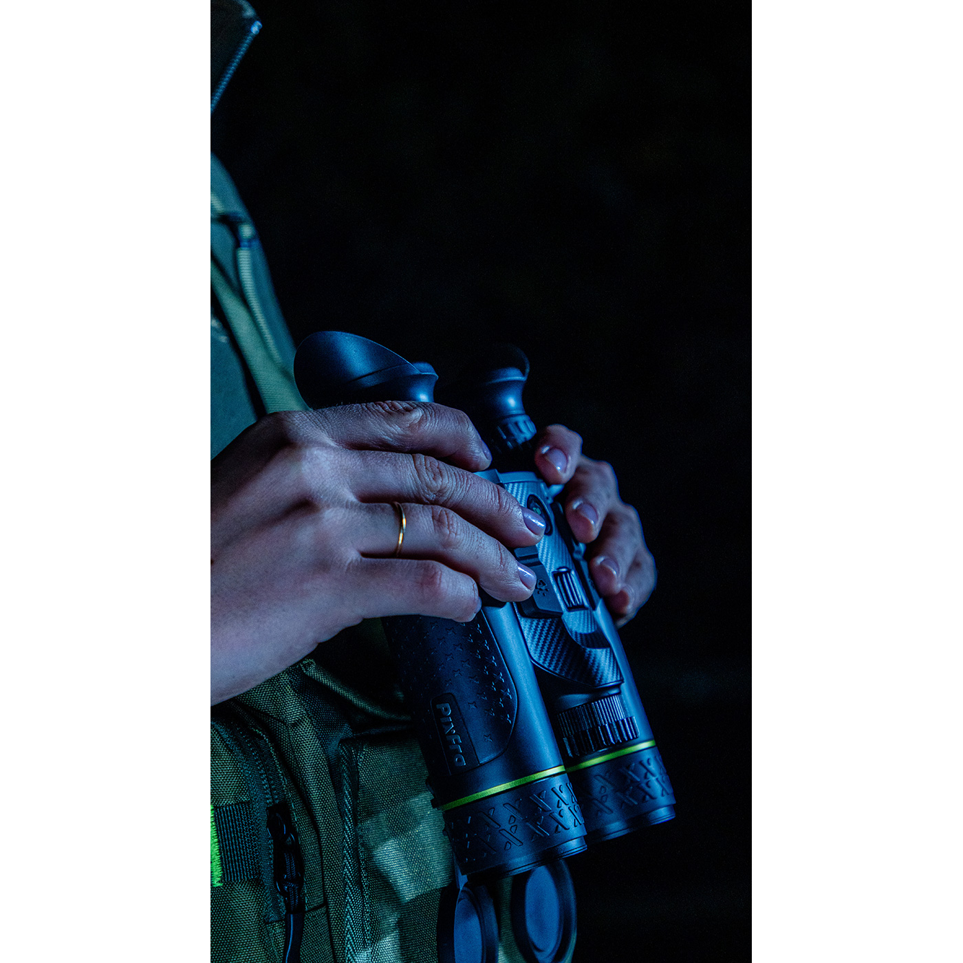 Het exclusieve Pixfra borstzakje houdt de Draco stevig tegen je lichaam. Zelfs als je hem loslaat, blijft hij beschermd en bij de hand - perfect om snel te wisselen tussen observatie en beweging.