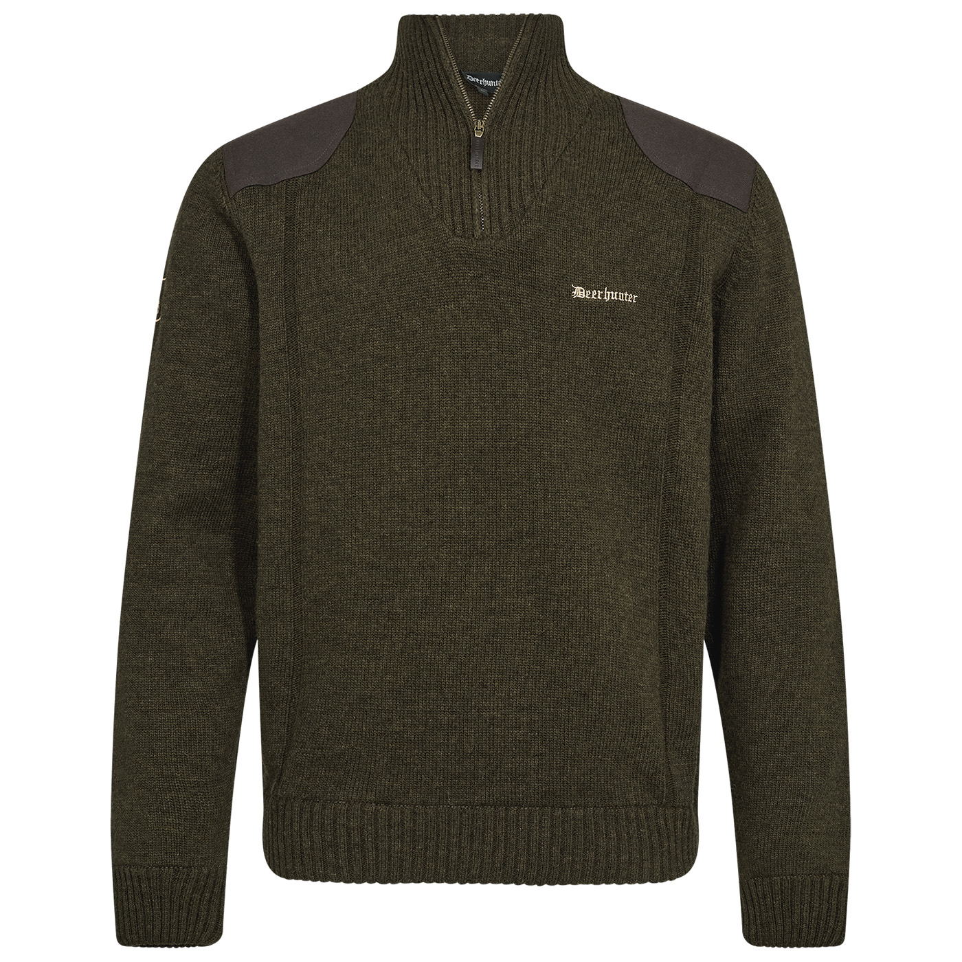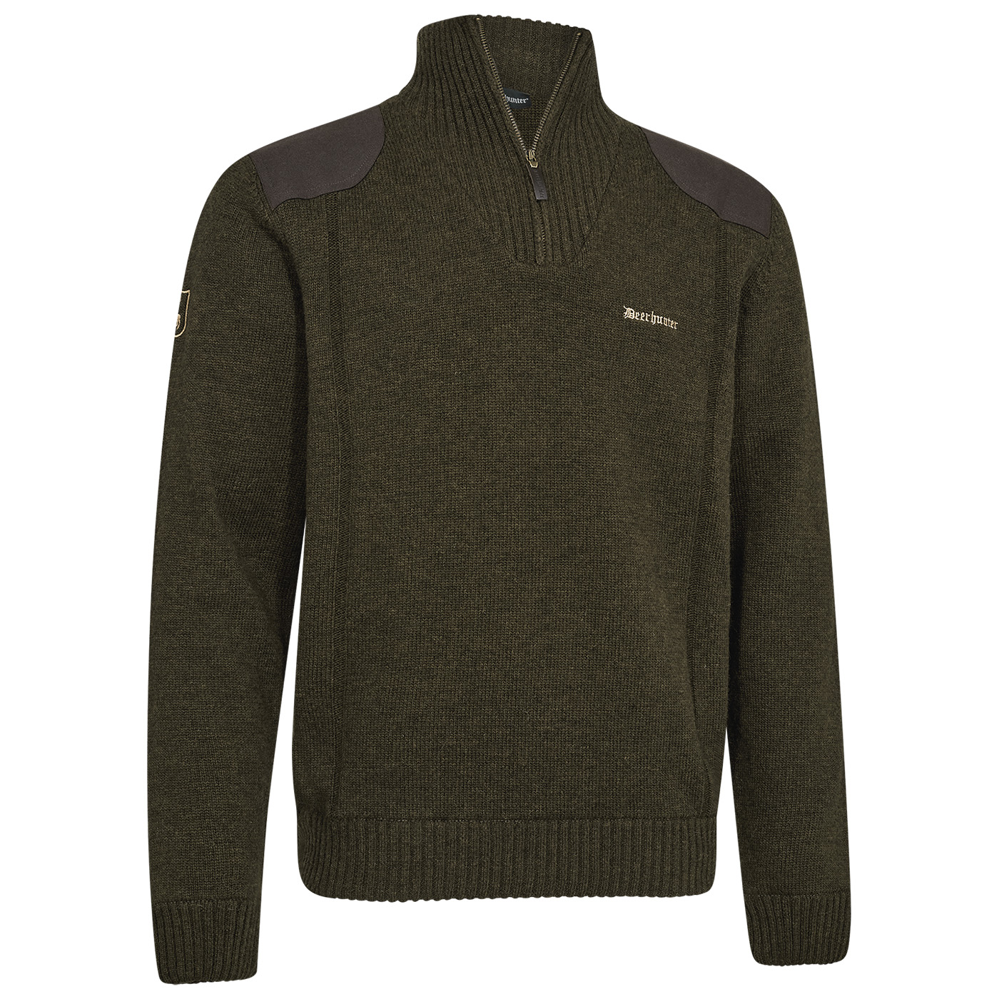 Comfortabele, stijlvolle gebreide trui met een kraag met ritssluiting. De zachte, hoogwaardige lamswol met toegevoegde elastaan zorgt altijd voor een perfecte pasvorm en is aangenaam zacht op de huid. Imitatiesuède inzetstukken in complementaire kleuren accentueren de schouder- en elleboogzones. Een goed passende, stijlvolle trui is onmisbaar op elke jachtdag.