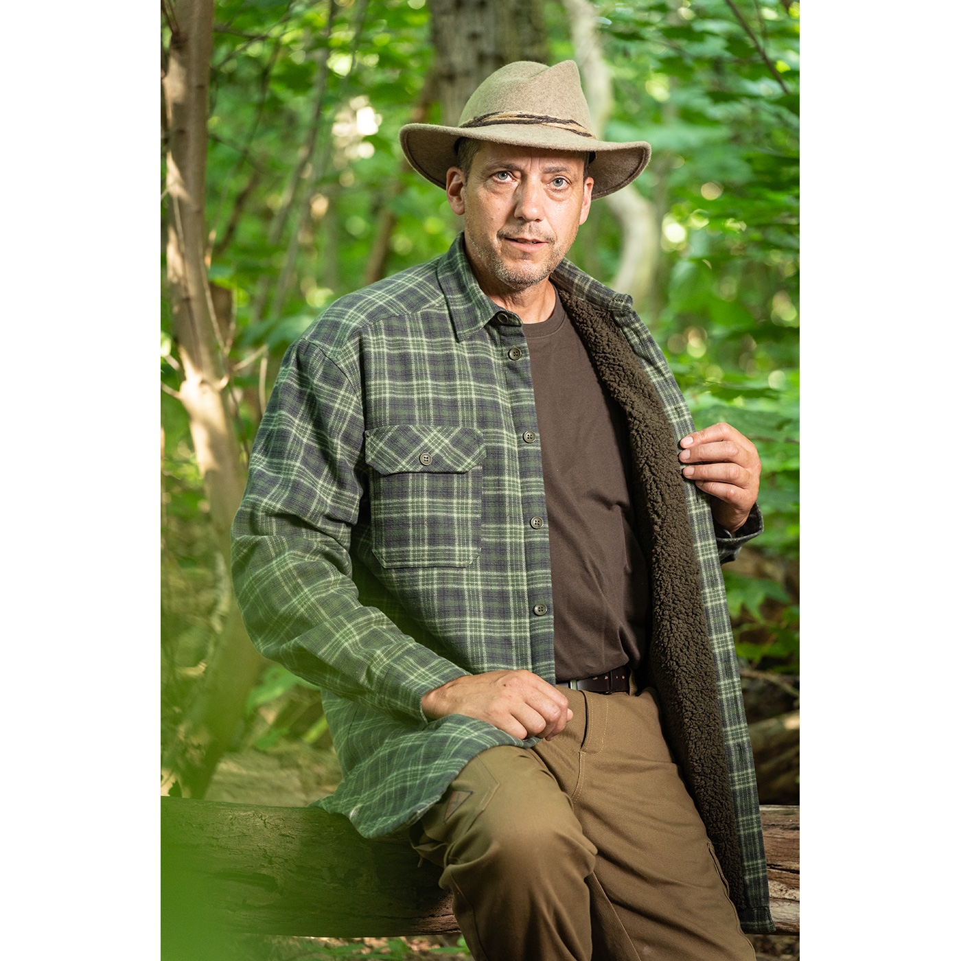 Ervaar het ultieme in comfort en stijl met het flanellen overhemd met teddy voering van Schmidt. Dit geruite flanellen overhemd combineert functionele warmte met een modern ontwerp. De olijfkleurige teddy voering aan de binnenkant van de voor- en achterkant zorgt voor een extra dosis gezelligheid, terwijl de huidvriendelijke stof het comfortabel maakt om te dragen. De mouwen zijn gevoerd met lichte, geborstelde fleece voor een betere beweeglijkheid. Uitgerust met twee praktische, afsluitbare borstzakken is dit shirt ideaal voor de jacht en buitenactiviteiten. De comfortabele wijdte en ruglengte garanderen ook optimaal comfort en bewegingsvrijheid. Perfect voor de winter en stijlvol tegelijk.