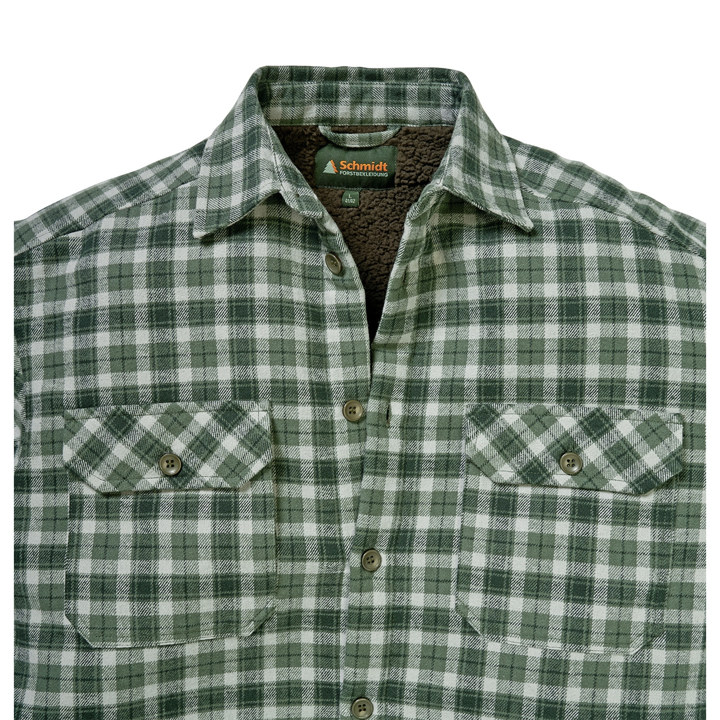 Ervaar het ultieme in comfort en stijl met het flanellen overhemd met teddy voering van Schmidt. Dit geruite flanellen overhemd combineert functionele warmte met modern design. De olijfkleurige teddy voering aan de binnenkant van de voor- en achterkant zorgt voor een extra dosis gezelligheid, terwijl de huidvriendelijke stof het comfortabel maakt om te dragen. De mouwen zijn gevoerd met licht, geborsteld fleece voor een betere beweeglijkheid. Uitgerust met twee praktische, afsluitbare borstzakken is dit shirt ideaal voor de jacht en buitenactiviteiten. De comfortabele wijdte en ruglengte garanderen ook optimaal comfort en bewegingsvrijheid. Perfect voor de winter en stijlvol tegelijk.