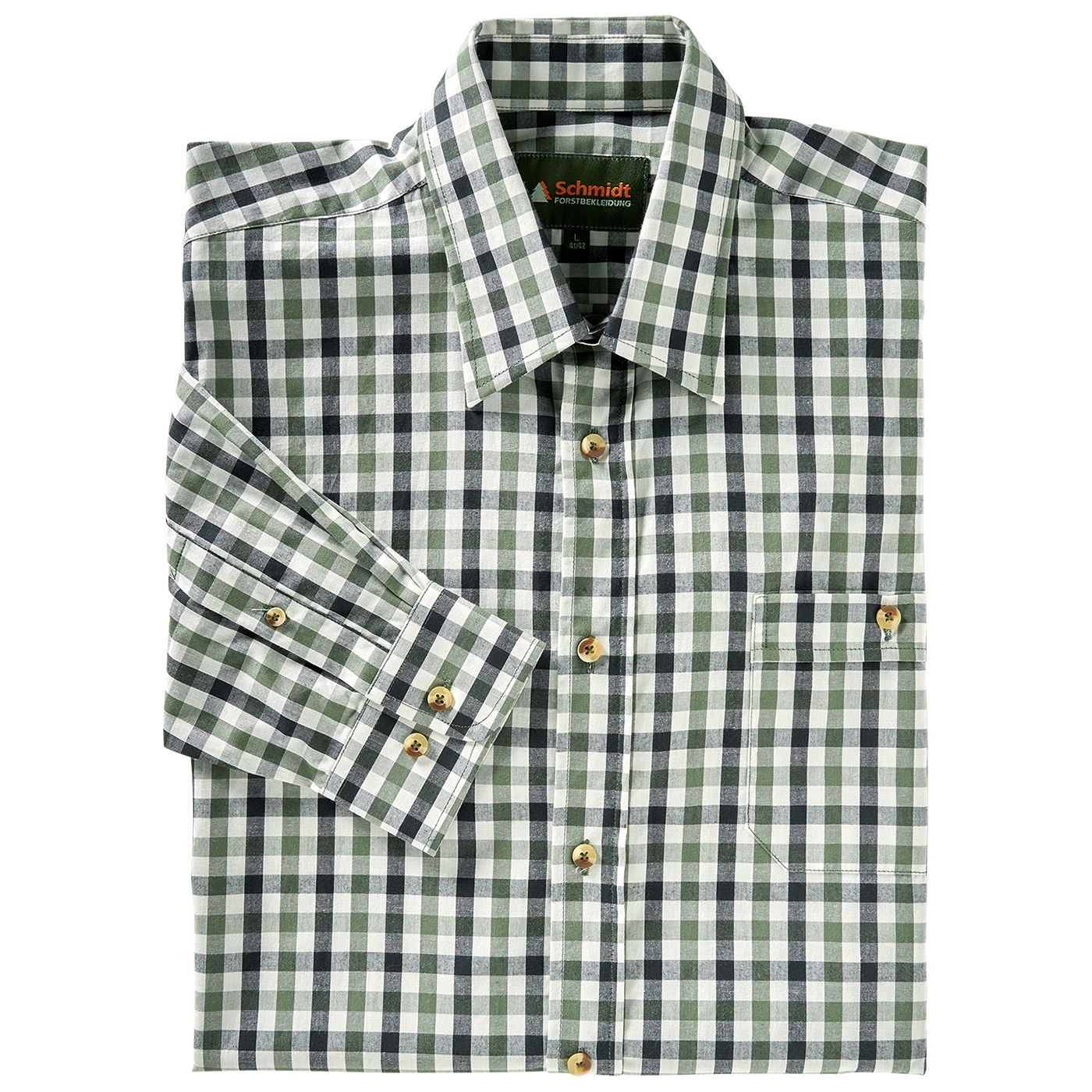 Klassiek geruit overhemd van Schmidt met een omgeslagen kraag - de perfecte metgezel voor je volgende buitenavontuur of jachttrip. Gemaakt van huidvriendelijk katoen is dit overhemd extreem comfortabel om te dragen, zelfs voor langere buitenactiviteiten. De comfortabele wijdte en optimale ruglengte zorgen voor een ideale pasvorm. De doorlopende knoopsluiting is afgewerkt met stijlvolle knopen in een natuurlijke look, en er is ook een praktische borstzak links met knoopsluiting voor extra opbergruimte voor kleine spullen. Of je nu gaat stalken of wandelen - met dit geruite overhemd ben je altijd goed uitgerust.