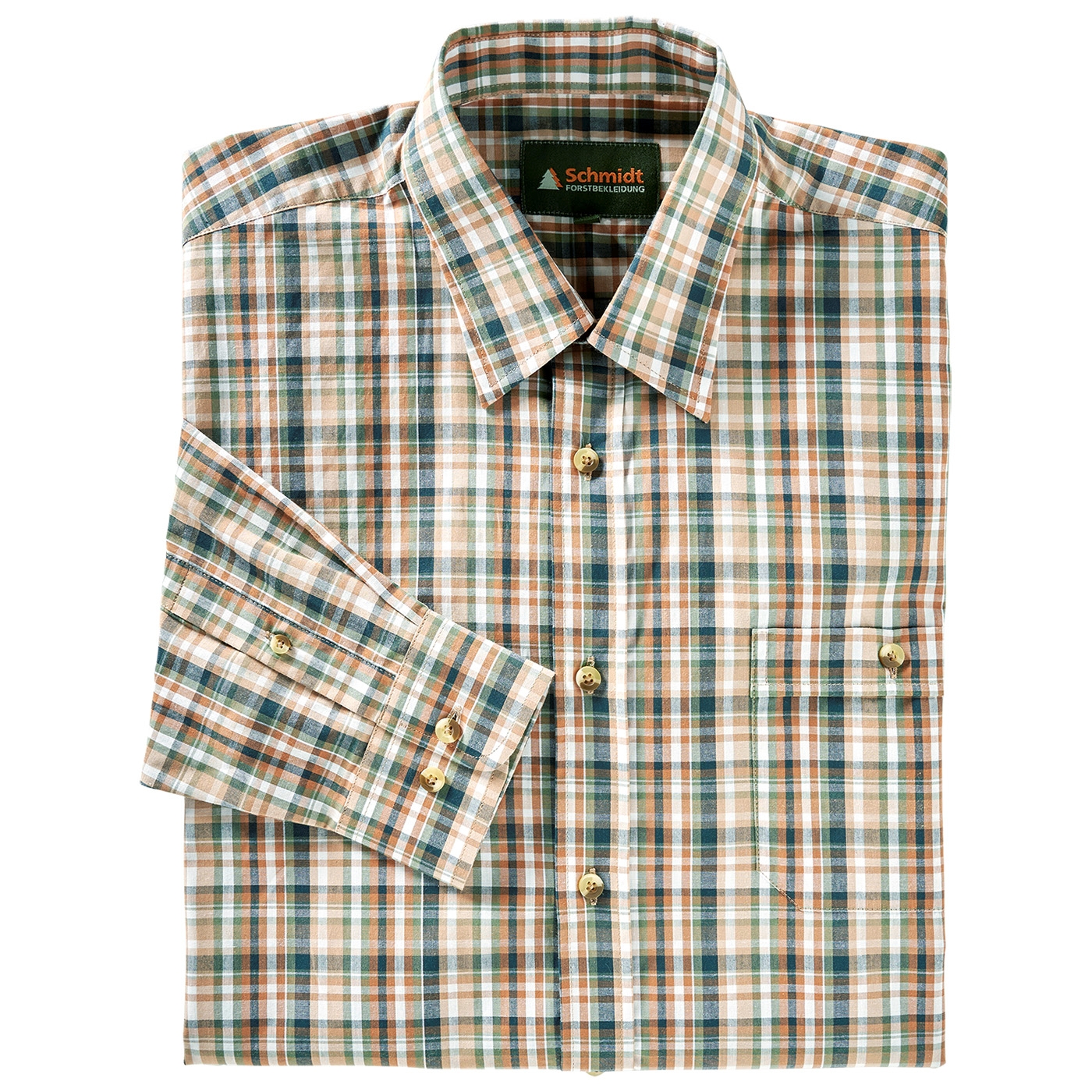 Klassiek geruit overhemd van Schmidt met een omgeslagen kraag - de perfecte metgezel voor je volgende buitenavontuur of jachttrip. Gemaakt van huidvriendelijk katoen is dit overhemd extreem comfortabel om te dragen, zelfs voor langere buitenactiviteiten. De comfortabele wijdte en optimale ruglengte zorgen voor een ideale pasvorm. De doorlopende knoopsluiting is afgewerkt met stijlvolle knopen in een natuurlijke look, en er is ook een praktische borstzak links met knoopsluiting voor extra opbergruimte voor kleine spullen. Of je nu gaat stalken of wandelen - met dit geruite overhemd ben je altijd goed uitgerust.
