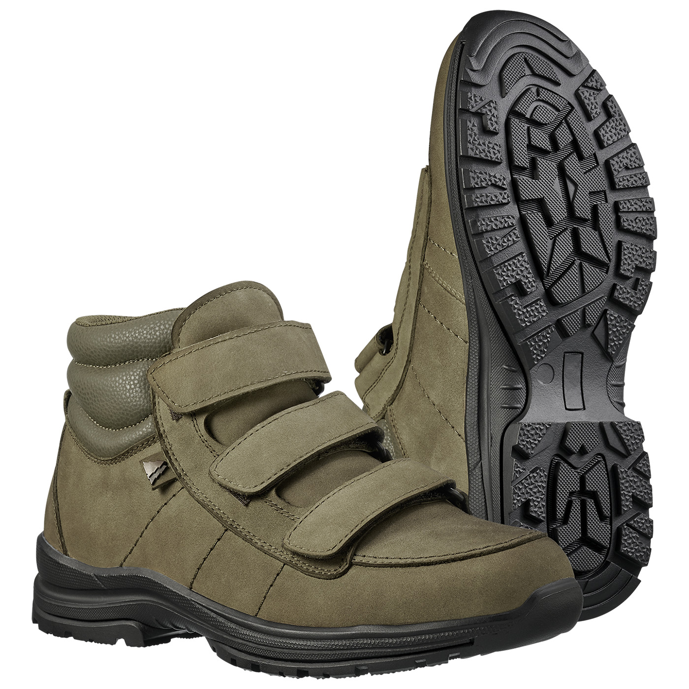 Comfortabele, lichtgewicht klittenband halve laars van nubuck met een hoog loop- en draagcomfort, biedt optimale ondersteuning en stabiliteit aan de voet, schoen met royale instap, hoge, goed gevoerde schacht, 3 klittenbandsluitingen, verwisselbaar voetbed en robuuste, antislip rubberen profielzool.