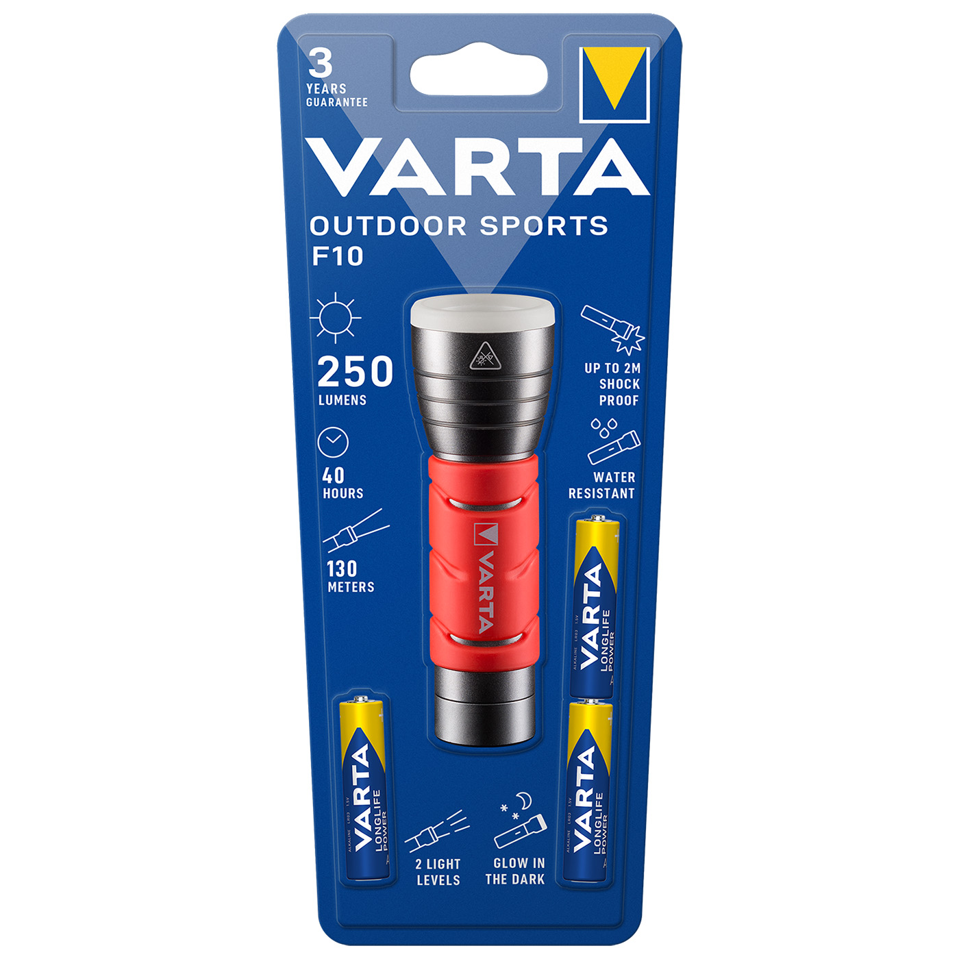 De Outdoor Sports F10 is de perfecte lamp voor elk avontuur, met uitstekende outdoor eigenschappen zoals water- en stofbescherming, heldere trendy kleuren en handige functies zoals een lichtgevende ring. Incl. VARTA batterijtype: 3 x Longlife Power AAA, gewicht incl. batterijen: 158,3g, lengte: 12,2cm, diameter (lampkop): 4cm.