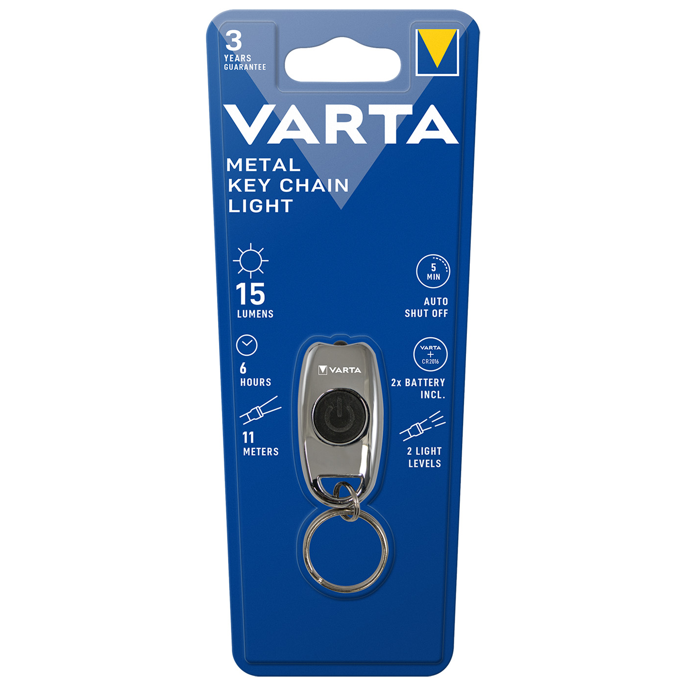 De VARTA aluminium sleutellamp is klassiek, elegant en robuust tegelijk. De tijdloze aluminium behuizing met een gestructureerd oppervlak ligt prettig in de hand. Incl. 2 knoopcellen VARTA Lithium Coin (type: CR2016). Gewicht incl. batterijen: 37,6g, lengte: 5cm