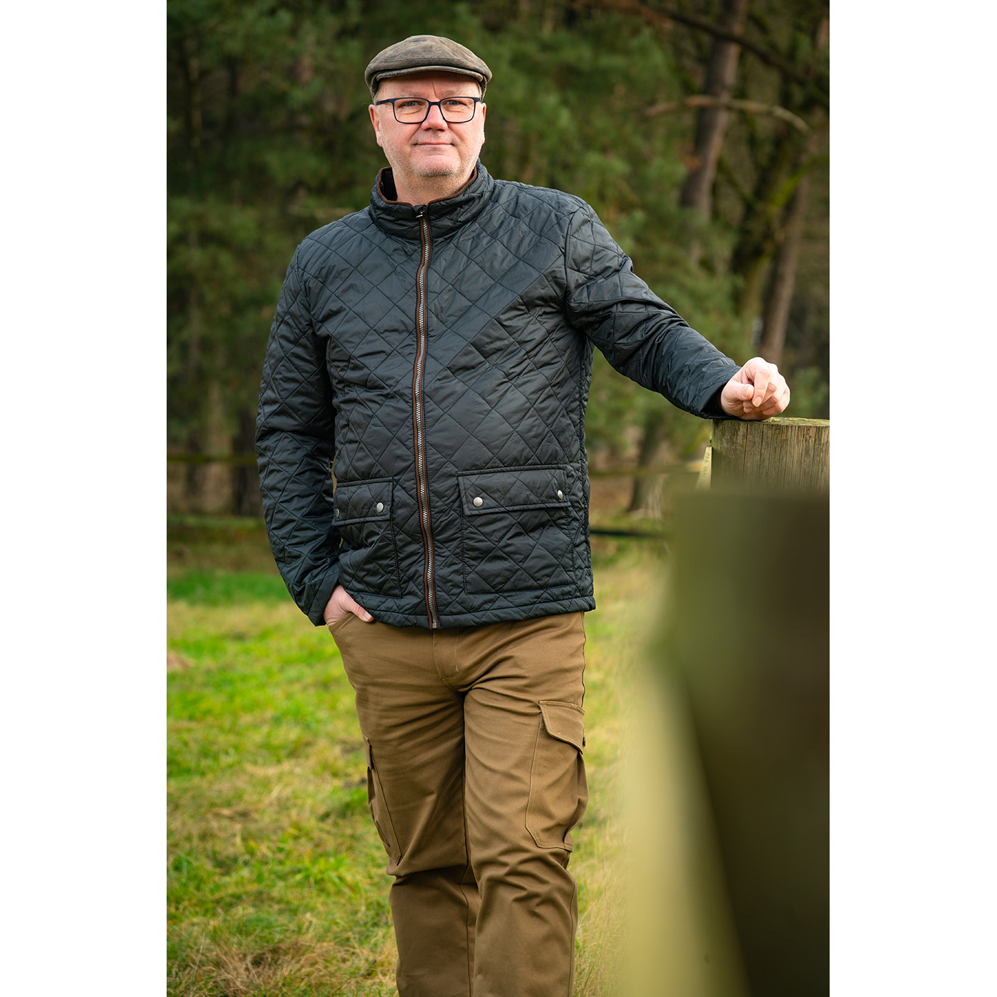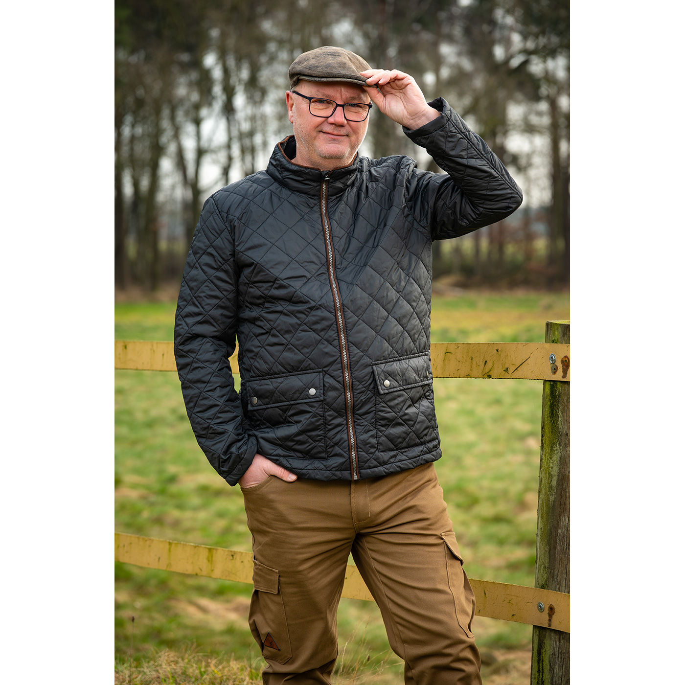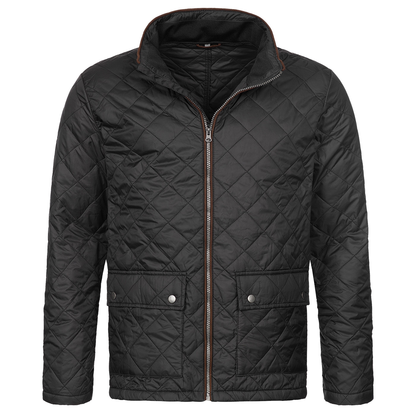 Lichtgewicht gewatteerd herenjack van slijtvast polyester buitenstof en warme polyester vulling. Met modieuze details zoals een opstaande kraag en opgestikte zakken met drukknopen. Bruine biezen op de kraag, voorkant en hanger (imitatieleer).