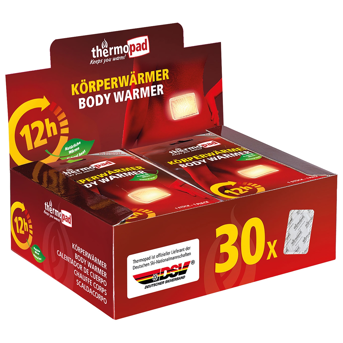 Luchtgeactiveerde rug-/lichaamsverwarmer. Tot 12 uur aangename warmte voor welzijn en ontspanning. Met zelfklevend textieloppervlak voor zachte bevestiging aan kleding. Doos van 30 stuks. 30 stuks.