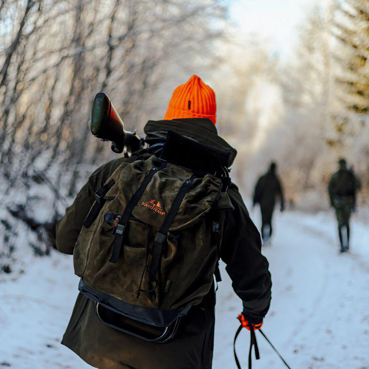 De Swedteam rugzak in Hunting Green is de perfecte combinatie van functionaliteit en comfort - of je nu gaat jagen, wandelen of lange dagen in het veld maakt. De waterafstotende buitenkant van SWEDTEAM® MOLLTEC™ biedt betrouwbare bescherming tegen vocht en is ideaal voor gebruik in het bos en in het veld. Bijzonder praktisch: de rugzak en het frame kunnen van elkaar worden gescheiden, waardoor je maximale flexibiliteit hebt. Het geïntegreerde zitframe met een zithoogte van 48 - 50 cm biedt een stabiele en comfortabele zitplaats voor pauzes of tijdens het jagen vanuit een schuilhut. Een vezelbeschermer op de frameconstructie beschermt je geweer tegen schuren. Met een volume van ca. 36 liter biedt de rugzak voldoende ruimte voor uitrusting, voedsel en jachtaccessoires.