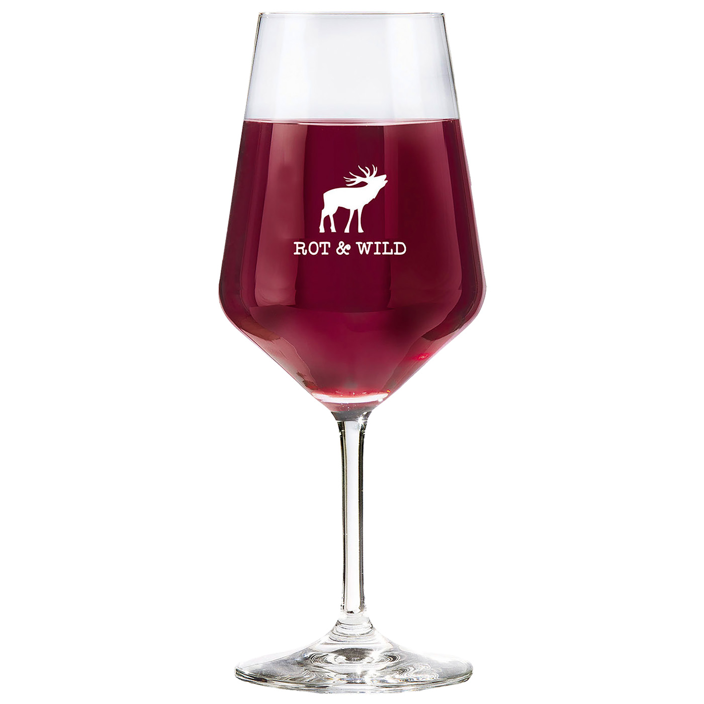 Rode wijnglazen gemaakt in Duitsland, eenvoudig maar stijlvol. Uitzonderlijk aantrekkelijk met hertenmotief en belettering. Duurzaam verpakt . Afmetingen: 22,3 x 9,2 cm