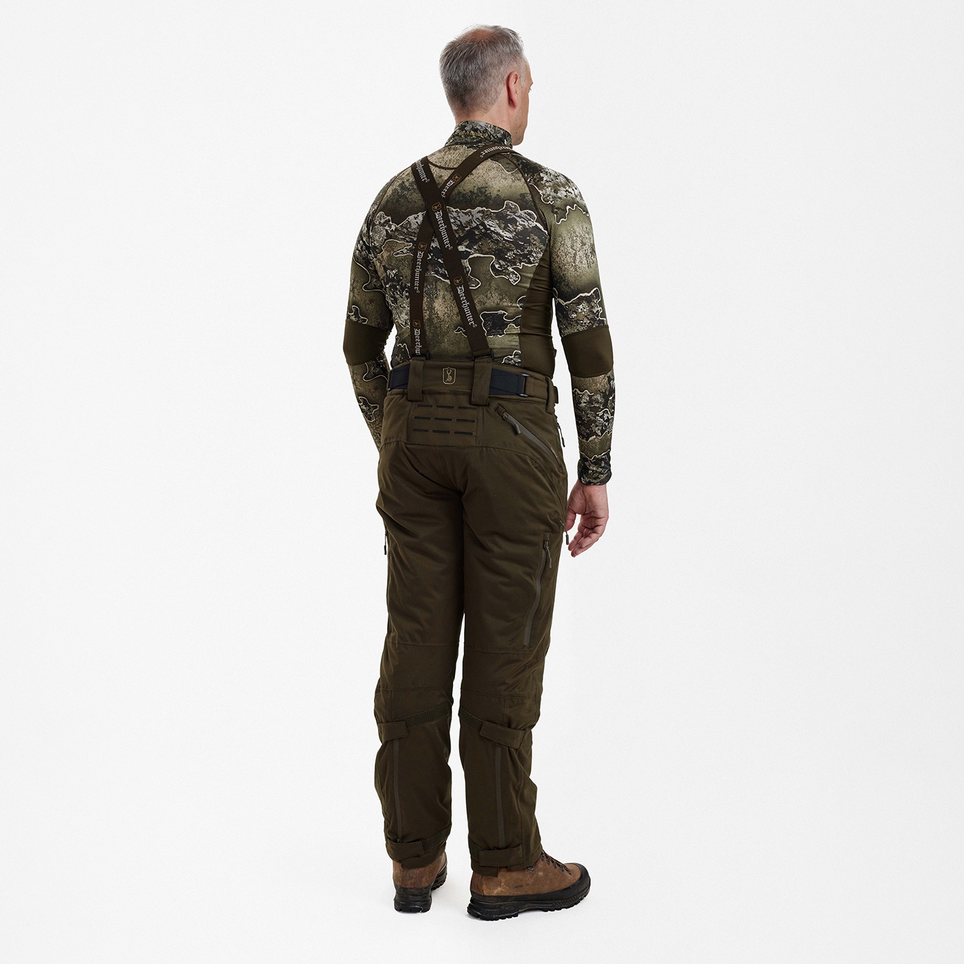 De geïsoleerde en waterdichte Excape winterbroek met DEER-TEX® Performance Shell membraan is een betrouwbare keuze, ongeacht het weer. Ademend, lichtgewicht en winddicht, deze broek is een must-have voor elk type jacht. De broek met verstelbare elastische tailleband, afneembare bretels en lussen voor verstelbare wijdte bij de onderbenen zorgen voor een aangepaste, comfortabele en veilige pasvorm. Het 2-weg stretchmateriaal, de voorgevormde knieën en de extra, verwarmende voering op het zitvlak en de achterkant van de dijen zorgen voor een hoog draagcomfort. 2 zijzakken aan de voorkant, 1 ergonomische beenzak en 1 achterzak met waterdichte ritsen zorgen voor voldoende opbergruimte. Deze broek heeft ook een waterafstotende voering en een gemakkelijk bereikbare, waterdichte ventilatierit onderin de rug.