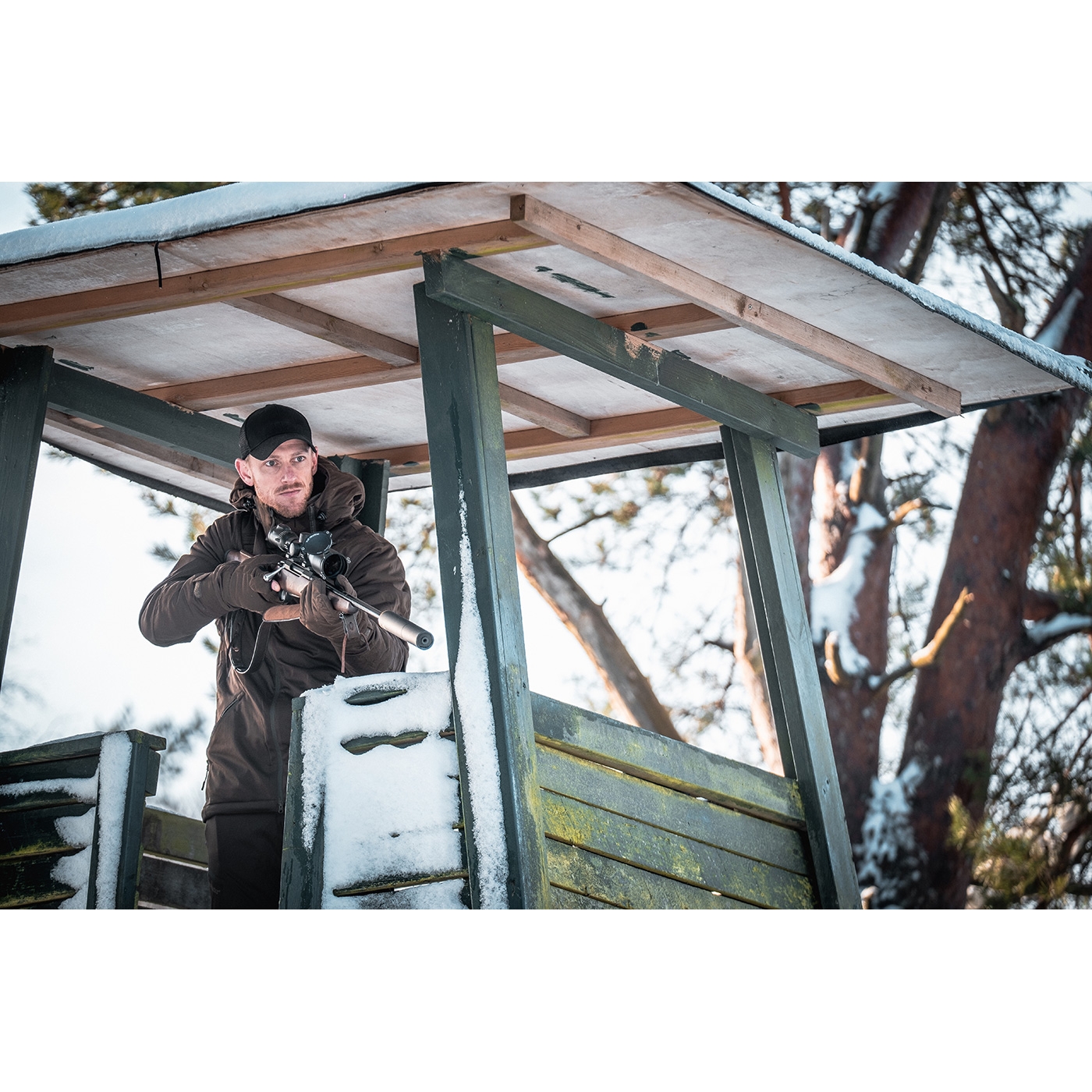 Het Excape Winter Jacket biedt alles wat je je maar kunt wensen in een lichtgewicht, ademend jack: van de afneembare capuchon tot het verborgen gezichtsmasker in de kraag. Dit functionele jack is waterdicht, winddicht en waterafstotend en heeft ook waterdichte ritsen voor de radiozak, de borstzak, de 2 voorzakken, de 2 handwarmerzakken en de centrale YKK tweerichtingsrits, het heeft ook 2 binnenzakken en biedt dus voldoende opbergruimte voor alle belangrijke spullen. De verstelbare manchetten en een verstelbaar trekkoord aan de onderkant van de jas zorgen voor een echt op maat gemaakte, comfortabele pasvorm. Als het weer slechter blijkt te zijn dan verwacht, is dat geen probleem met de Excape winterjas. Hij is niet alleen volledig geïsoleerd, maar heeft ook extra voering op de rug om je 's ochtends en 's avonds warm te houden op koude jachtdagen. Voor een goede ventilatie heeft deze jas waterdichte ventilatieritsen aan de voorkant van de kraag, onder de armen en achter in de nek. Een lus voor het bevestigen van de radio, een elastische lus voor de antenne, voorgevormde ellebogen en stormmanchetten ronden de kenmerken van deze jachtjas perfect af.