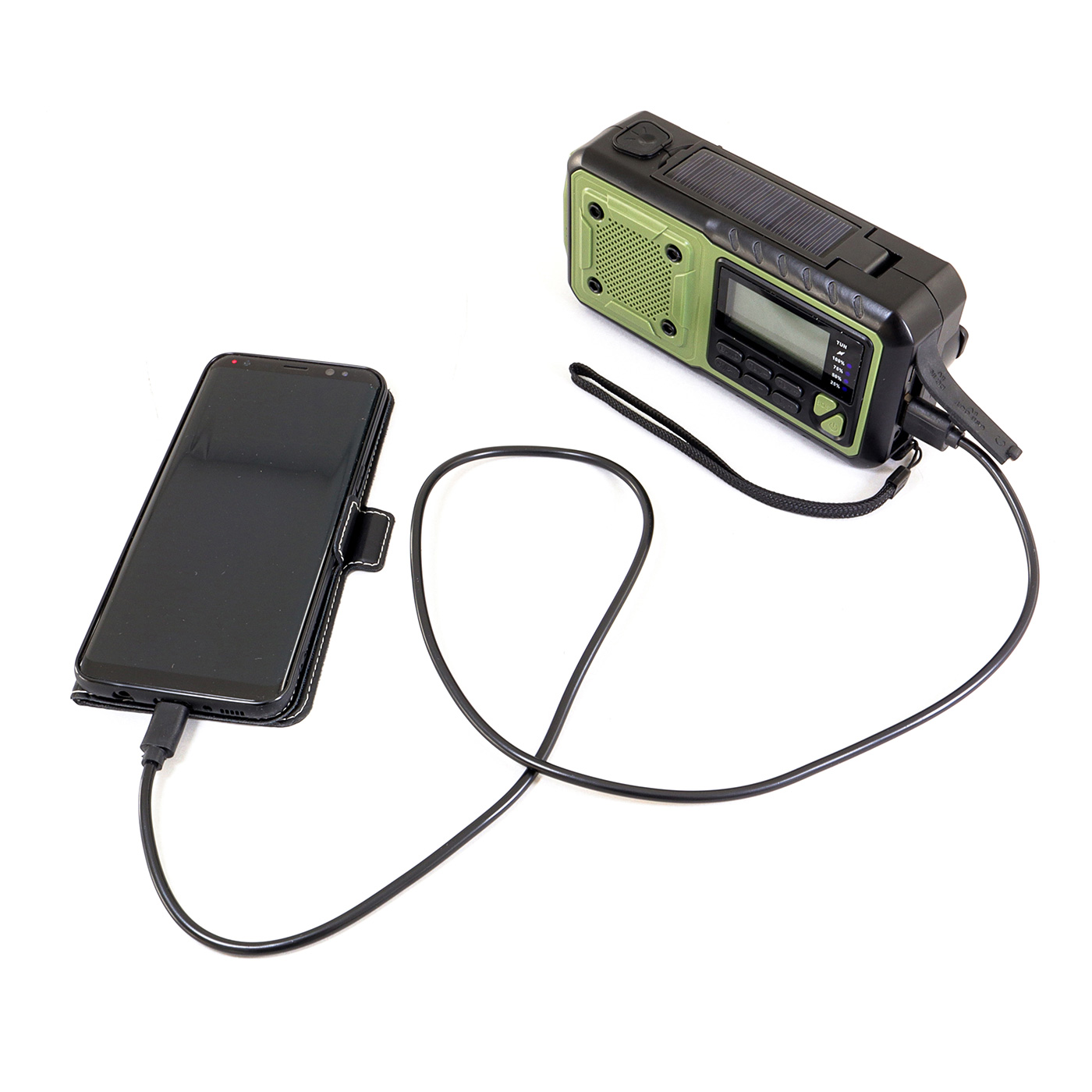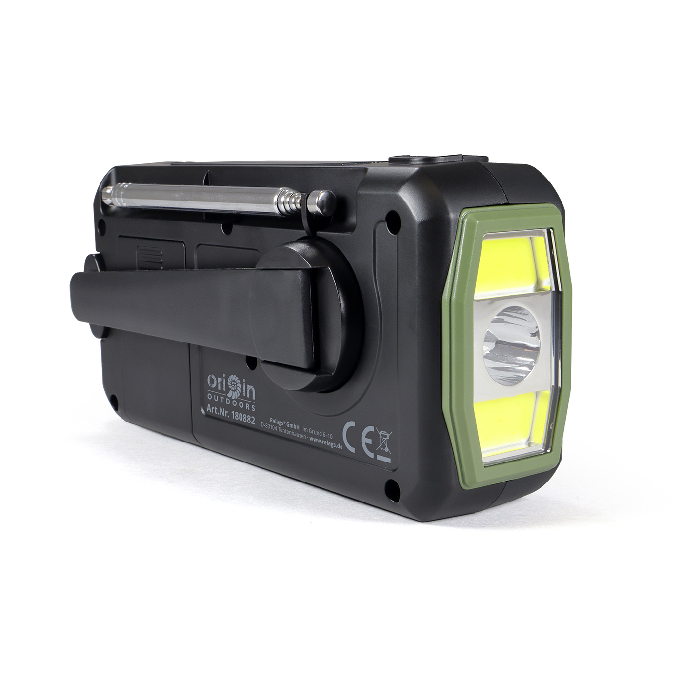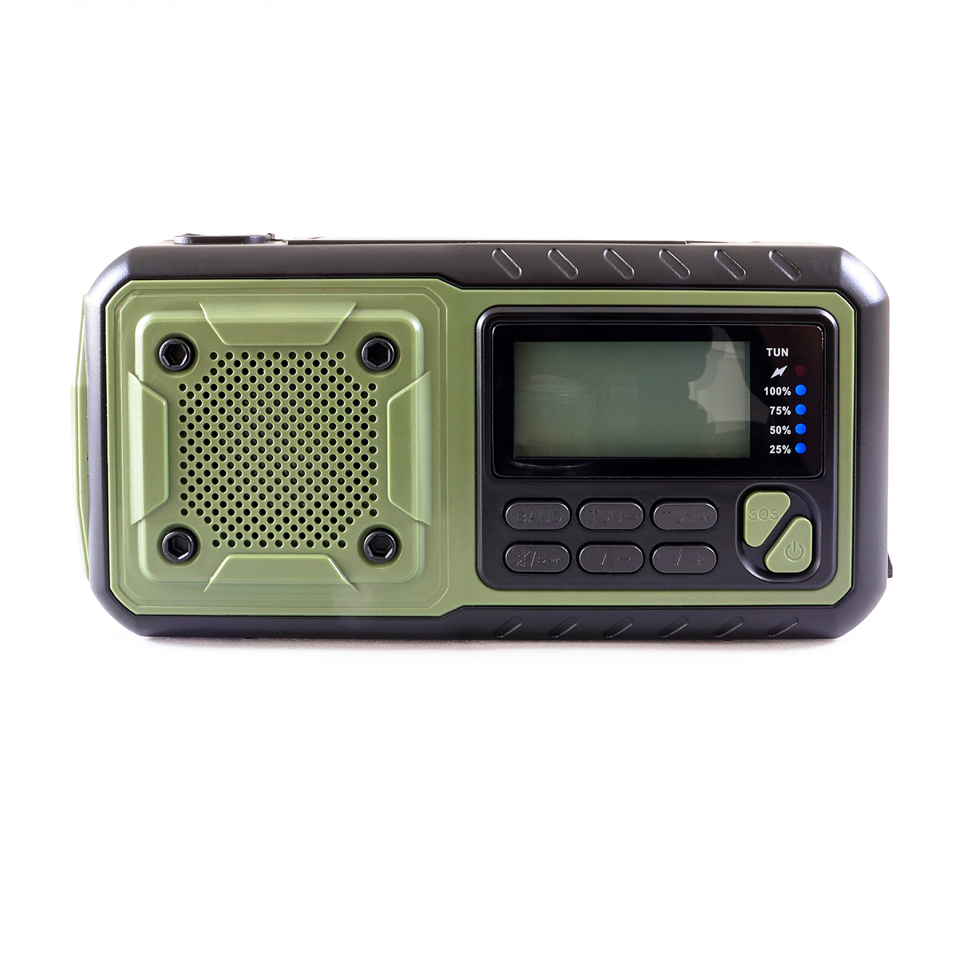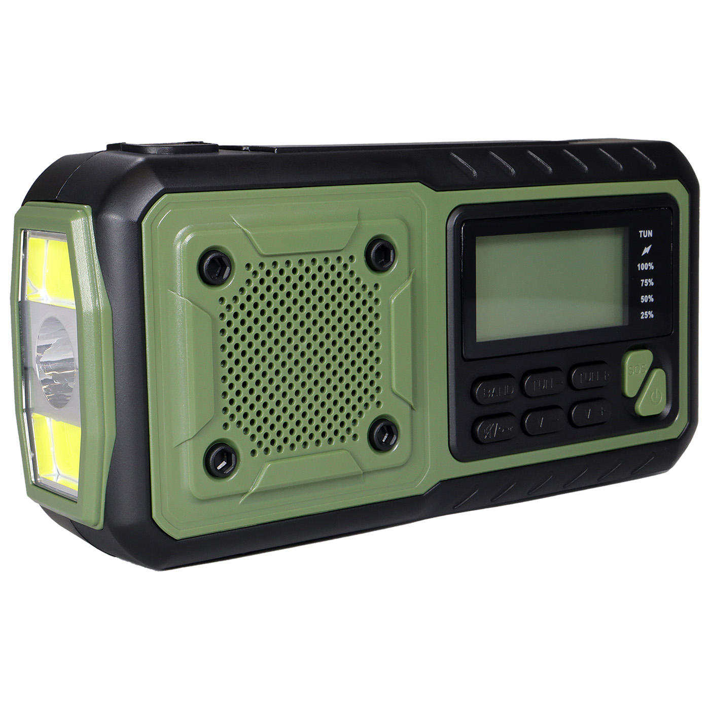 De compacte en robuuste zwengelradio is altijd klaar voor gebruik, waar je ook bent. Hij ontvangt berichten via AM, FM en SW. De radio heeft een geïntegreerde en oplaadbare lithiumbatterij die kan worden opgeladen via USB Type-C, de geïntegreerde zwengelgenerator of, in geval van nood, via de geïntegreerde zonnecel als de zon schijnt. De noodradio kan ook worden gebruikt met standaard AAA-batterijen. Uitgerust met powerbank (4000mAh), zaklamp en leeslampje, sleutelslot, hoofdtelefoonaansluiting, SOS alarmknop, batterijniveau-indicator en ophanglus. De krachtige zaklamp kan worden gebruikt met drie verschillende lichtstanden. De SOS alarmknop activeert een luid alarm om je te waarschuwen in geval van nood. Ideaal voor kamperen en buitenactiviteiten.